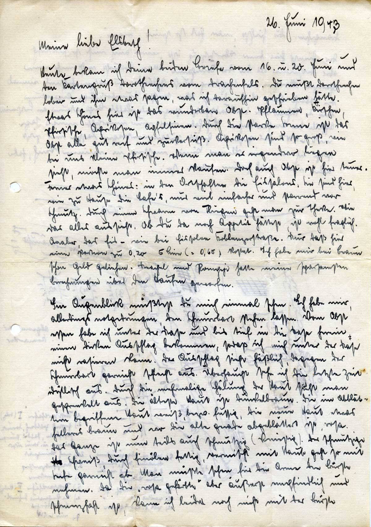 Johannes Ließem an seine Frau Elsbeth, 26. Juni 1943