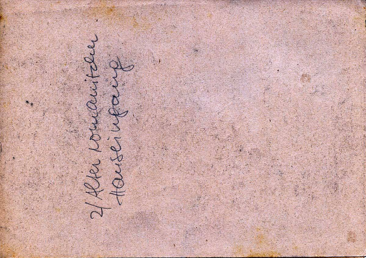 Leider habe ich an Farbstiften nicht viel, nur das, was man zum Kartenzeichnen in der Meldetasche mitführt. Außerdem ist die Technik bei den Bildern schlecht. Aber ich bin ja nun kein Maler. Zweck ist ja nur, Dir den Eindruck, wie es hier um mich steht und um mich aussieht, zu vermitteln. Und habe ich mir nicht Mühe gemacht? Jede freie Minute, noch abends spät bei der Karbidlampe war ich bei meiner Malerei. Trotz der Mangelhaftigkeit bin ich aber ganz „stolz“ auf mein „Werk“. Hast Du noch einige „Stifte in bunt“ da? Zwei Zulassungsmarken habe ich nochmal ergattert und füge sie hier bei.