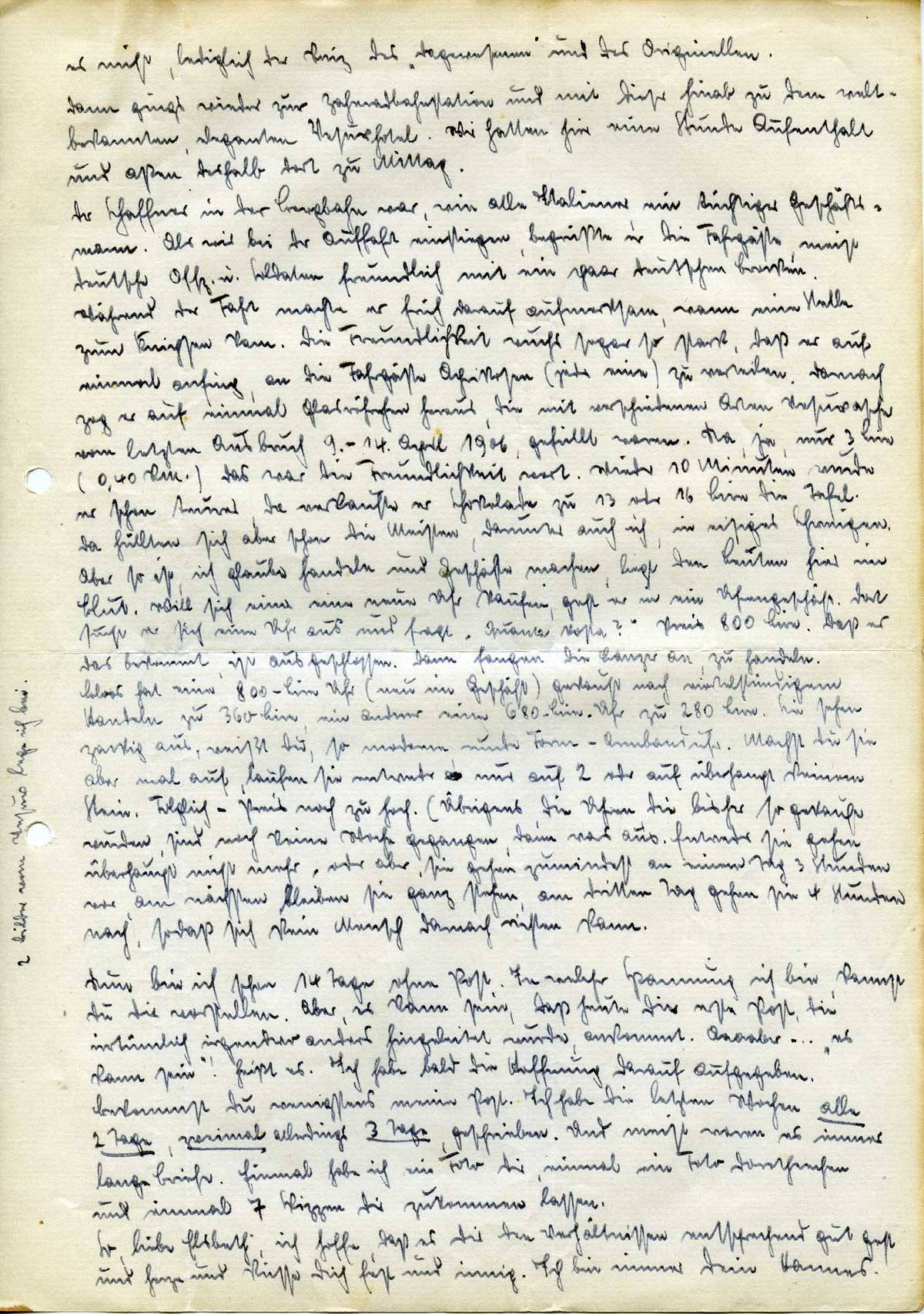Nun bin ich schon 14 Tage ohne Post. In welcher Spannung ich bin, kannst Du Dir vorstellen. Aber, es kann sein, daß heute die erste Post, die irrtümlich irgendwo anders hingeleitet wurde, ankommt. Aaaaber … „es kann sein“! heißt es. Ich habe bald die Hoffnung darauf aufgegeben.