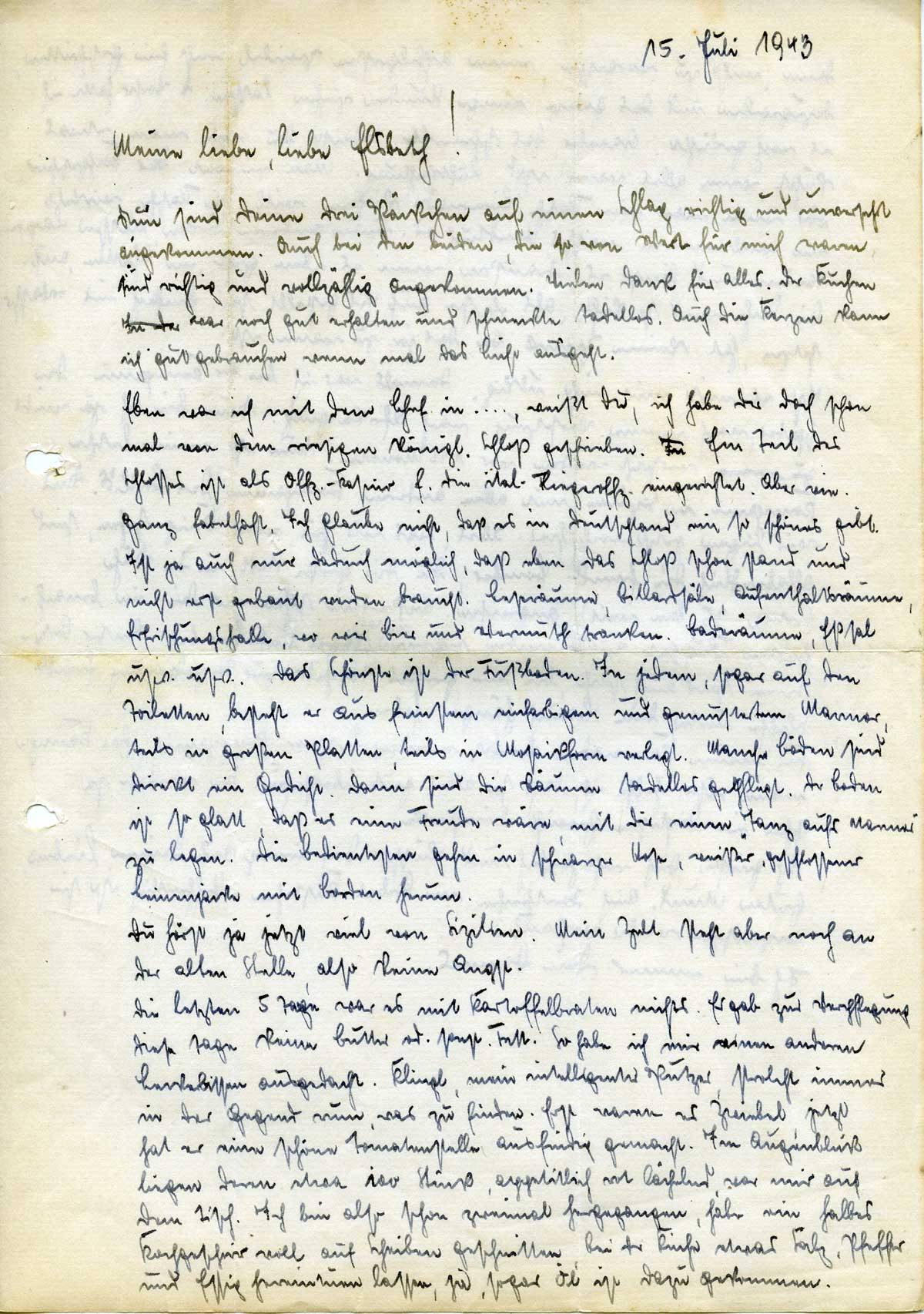 Johannes Ließem an seine Frau Elsbeth, 15. Juli 1943