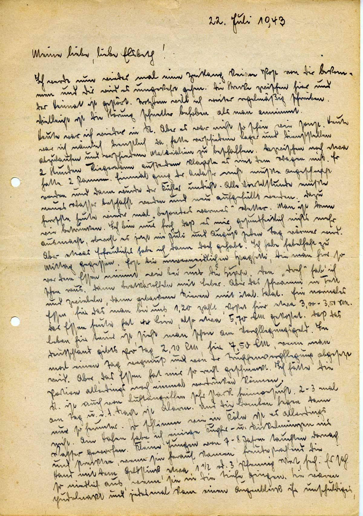 Johannes Ließem an seine Frau Elsbeth, 22. Juli 1943