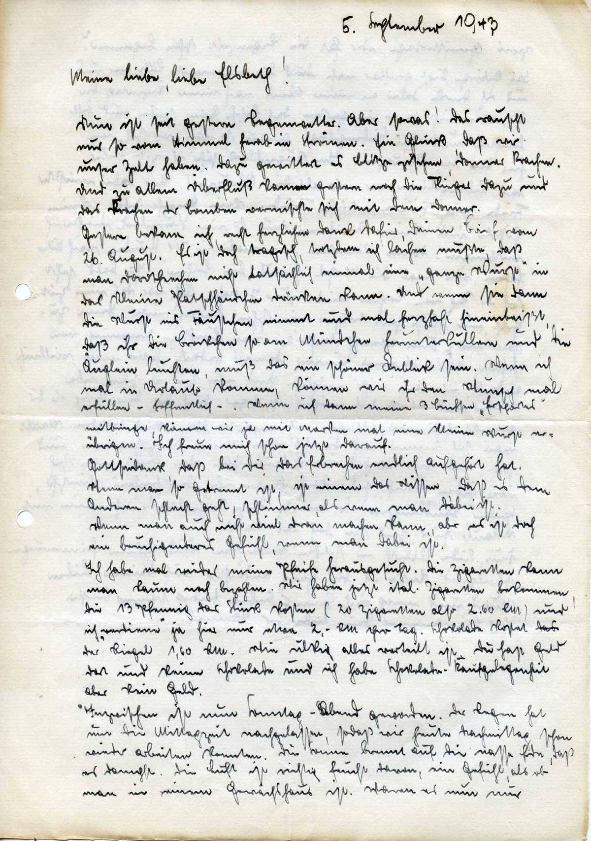 Johannes Ließem an seine Frau Elsbeth, 5. September 1943