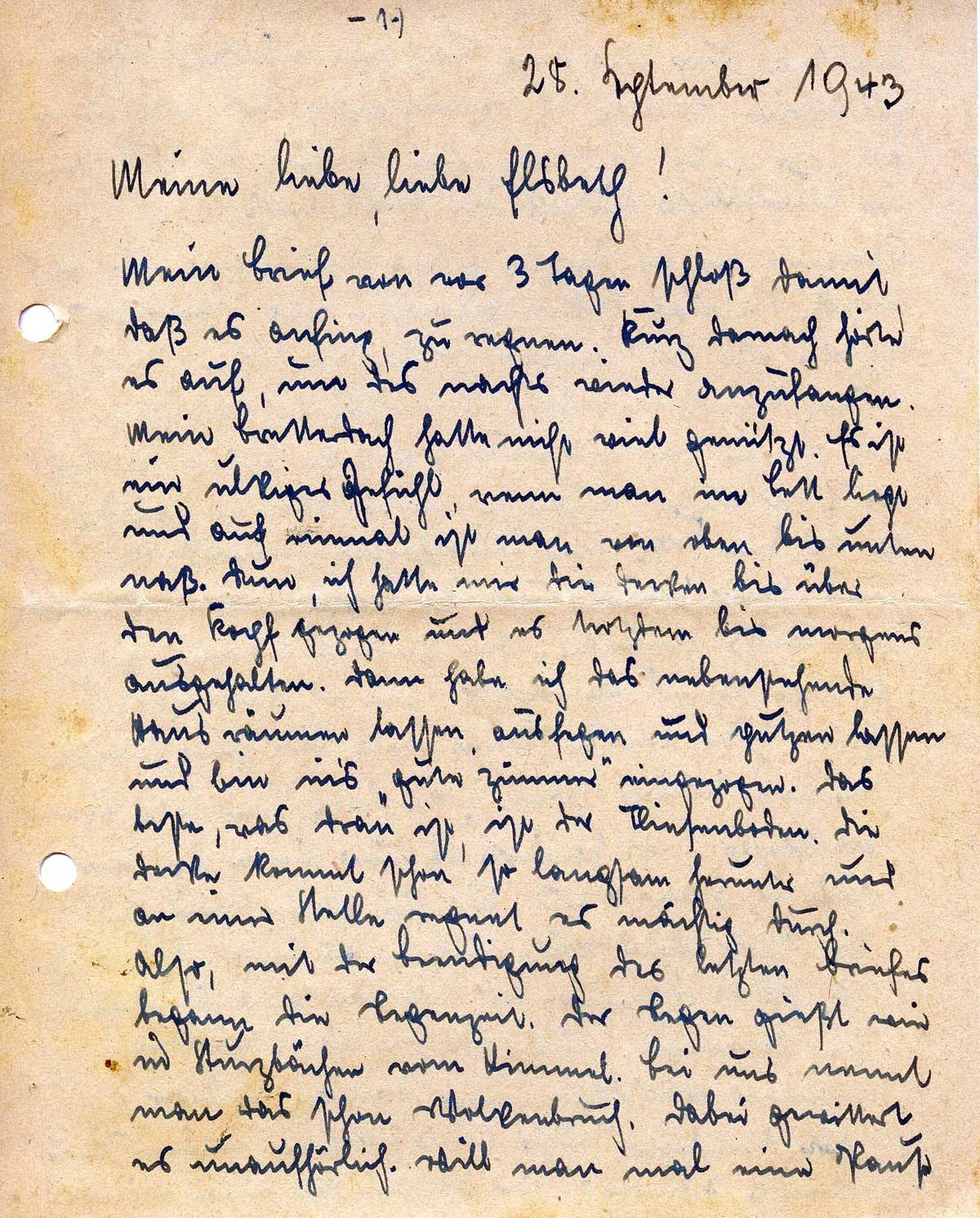 Johannes Ließem an seine Frau Elsbeth, 28. September 1943