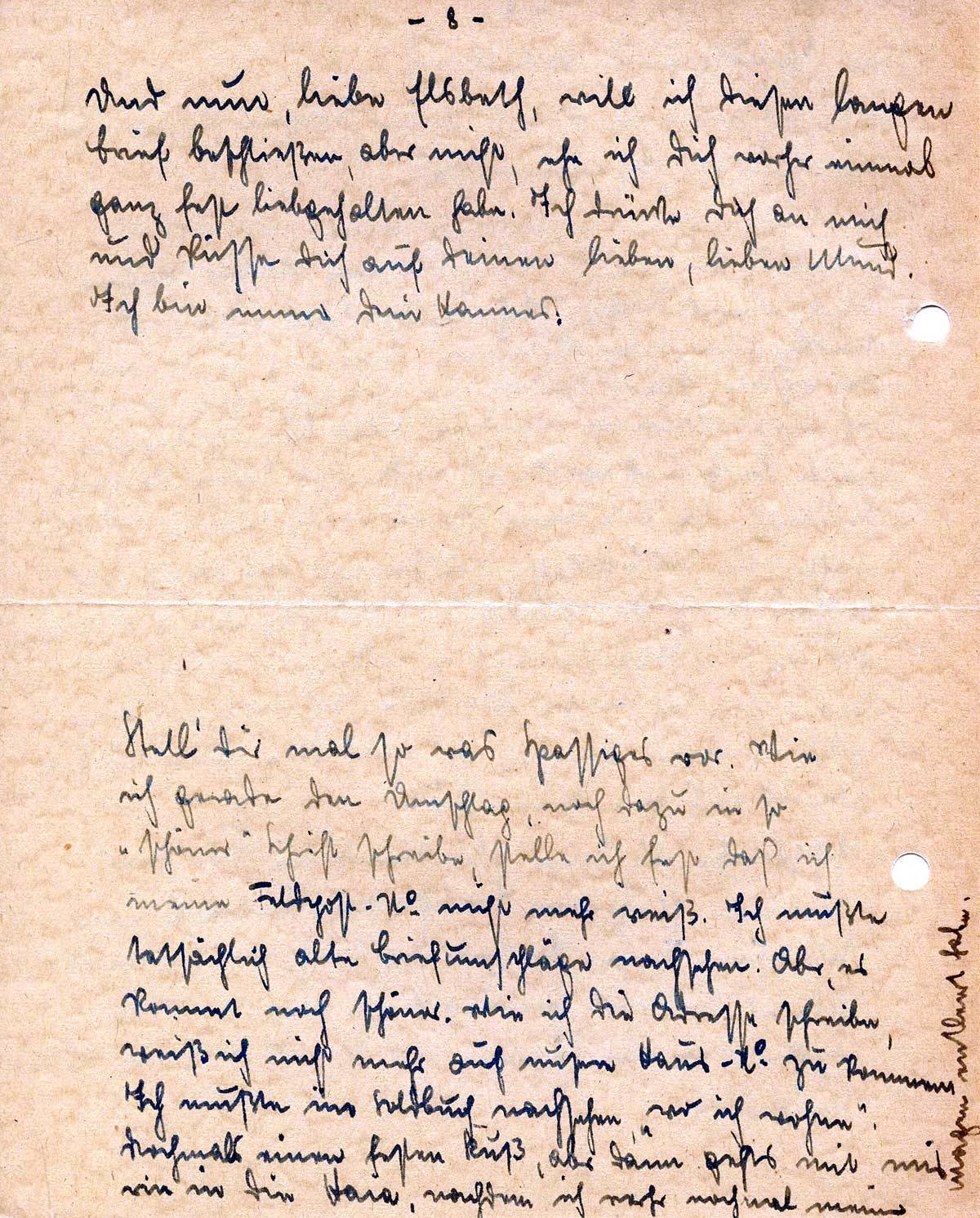 Und nun, liebe Elsbeth, will ich diesen langen Brief beschließen, aber nicht, ehe ich Dich vorher einmal ganz fest liebgehalten habe. Ich drücke Dich an mich und küsse Dich auf Deinen lieben, lieben Mund.