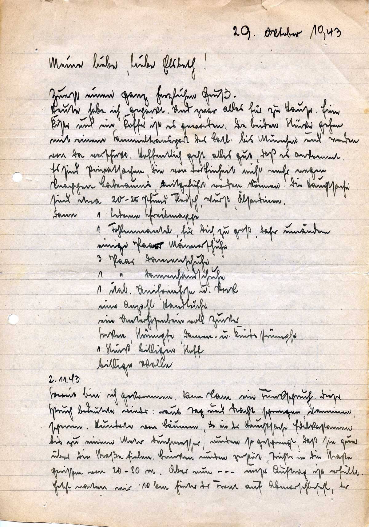 Johannes Ließem an seine Frau Elsbeth, 29. Oktober 1943