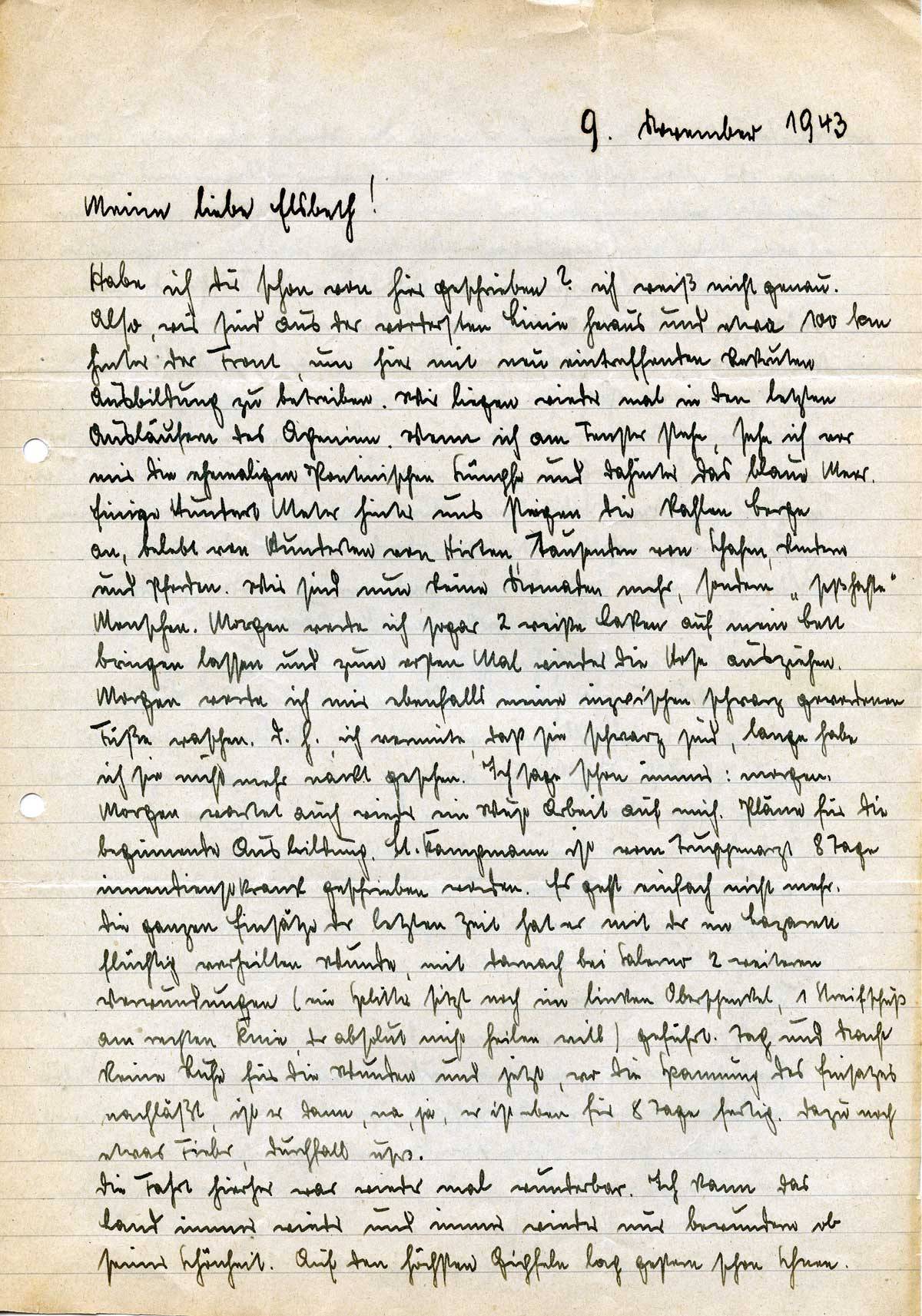 Johannes Ließem an seine Frau Elsbeth, 9. November 1943