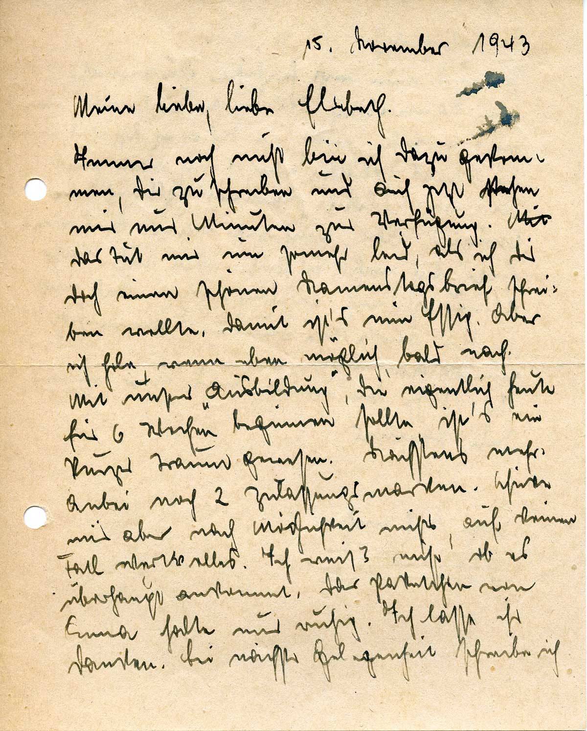 Johannes Ließem an seine Frau Elsbeth, 15. November 1943