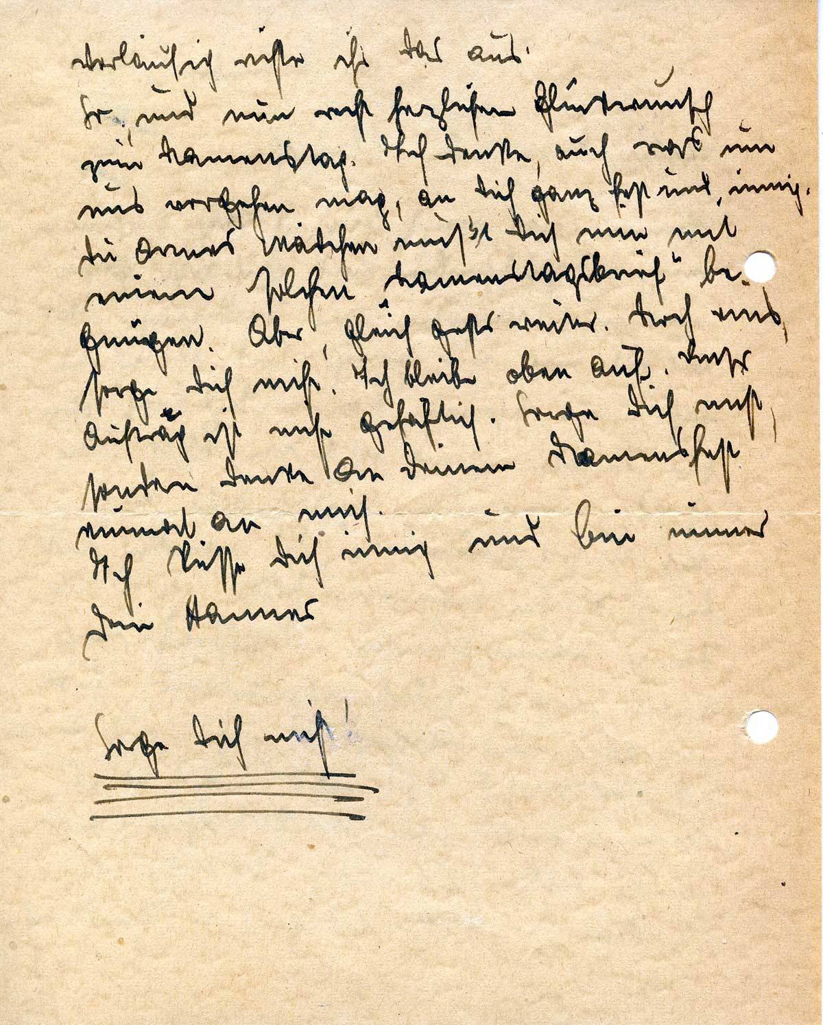 So, und nun recht herzlichen Glückwunsch zum Namenstag. Ich denke, auch was um uns vorgehen mag, an Dich ganz fest und innig. Du armes Mädchen mußt Dich nun mit einem solchen „Namenstagsbrief“ begnügen. Aber, gleich gehts weiter.