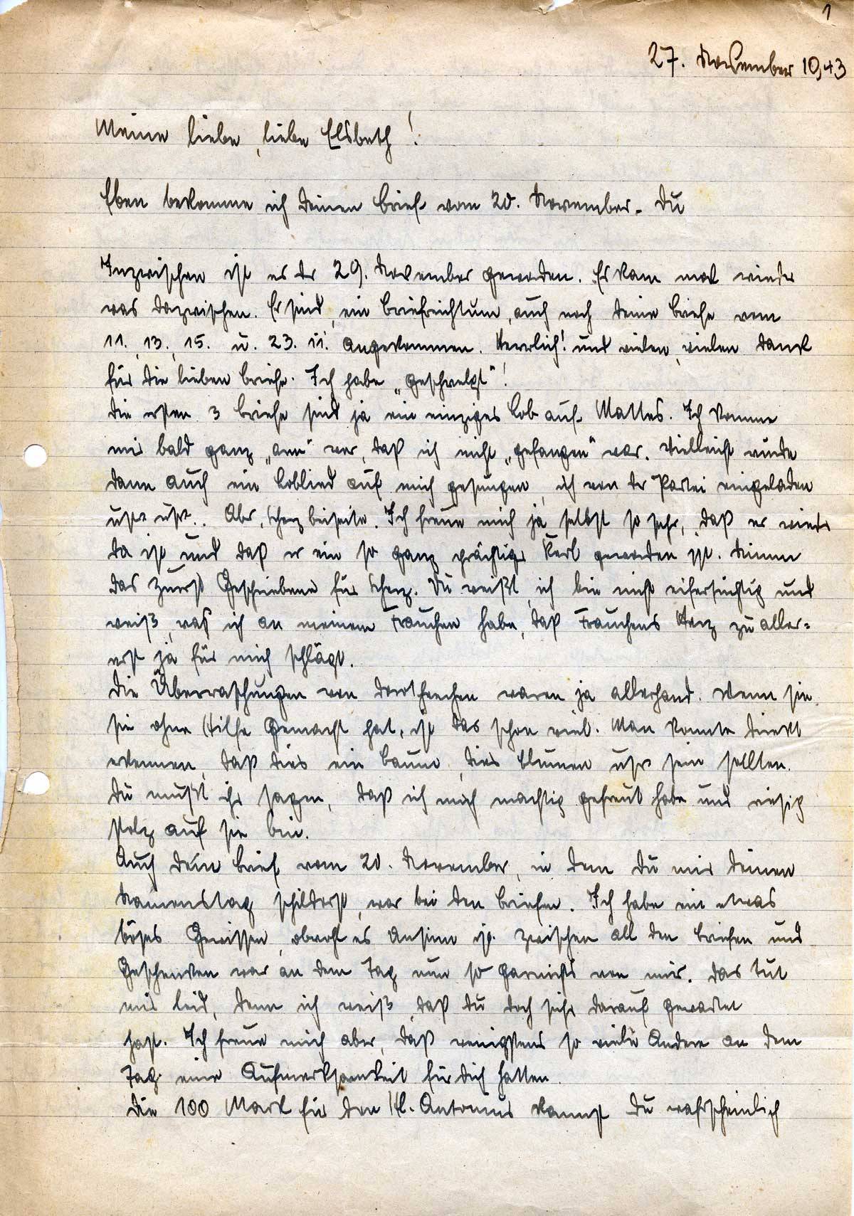 Johannes Ließem an seine Frau Elsbeth, 27. November 1943
