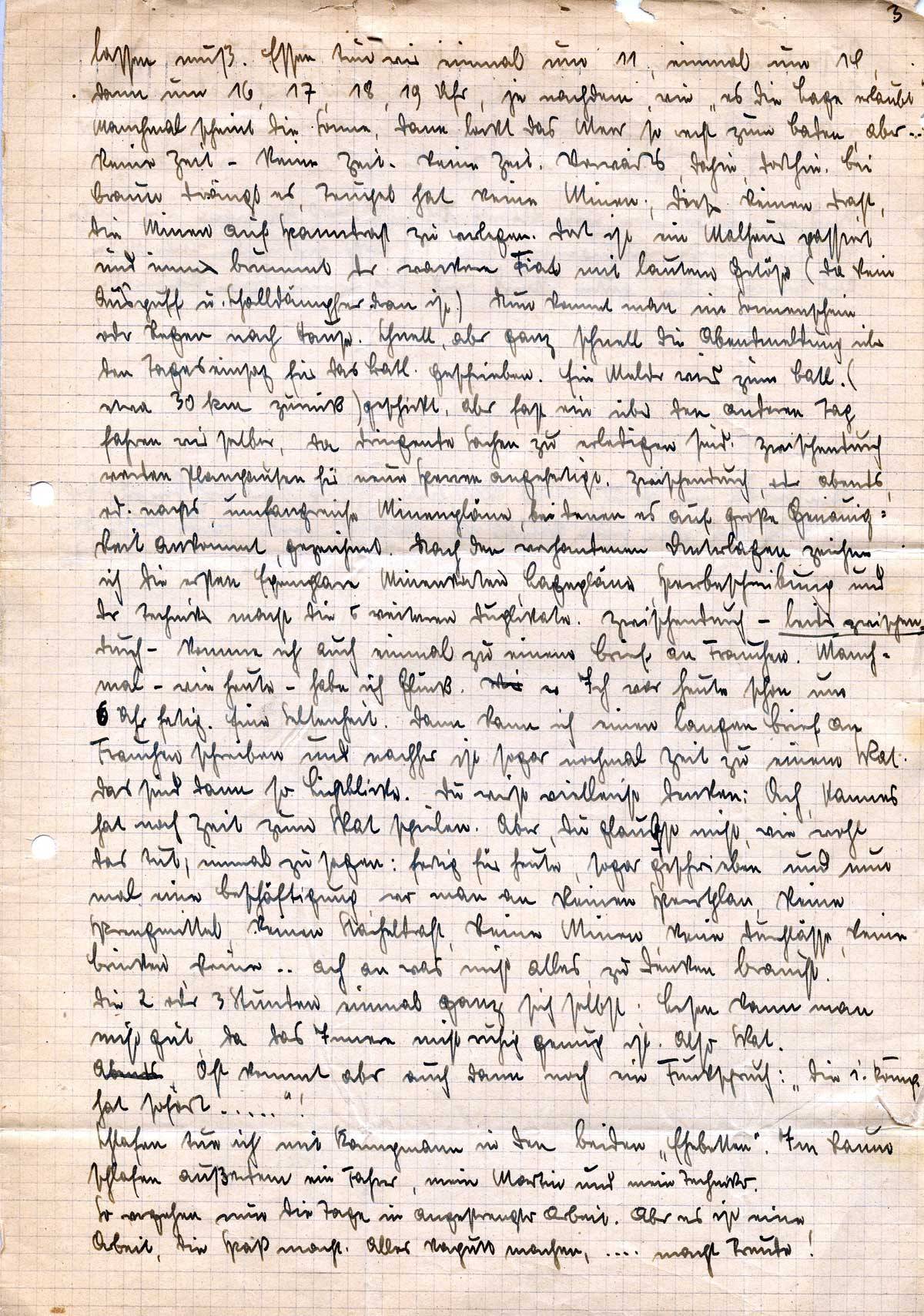 sparen. Ich schrieb ja schon, was mit dem Koffer passiert ist. Nun habe ich auch nichts mehr hier, was ich Dir einmal zukommen lassen könnte. Sollte ich einmal kommen, komme ich mit leeren Händen. Höchstens Apfelsinen kann ich Dir mitbringen. Aaaber, aber, wann? Hier in dem Bergnest, wohnen noch Zivilisten. Noch nicht mal kaufen kann man was. Die Leute haben selbst nichts. Ich wollte Dir doch 3 ein kg-Päckchen Apfelsinen schicken. Es ist zu dumm, daß man’s schicken muß. Aber die Sache scheitert an den . . . Päckchen. Kein Karton oder Pappdeckel ist in der Kompanie, im Ort oder sonstwo aufzutreiben. Ich schäme mich richtig, es sagen zu müssen. Wenn Du die Marken bekommen hast, schicke mir doch Kartons. Ich habe ja alles, was ich zum Leben brauche, aber Euch könnte ich doch eine Freude machen. Ich lasse natürlich in meinen Bemühungen nicht nach, noch etwas Karton zu finden.