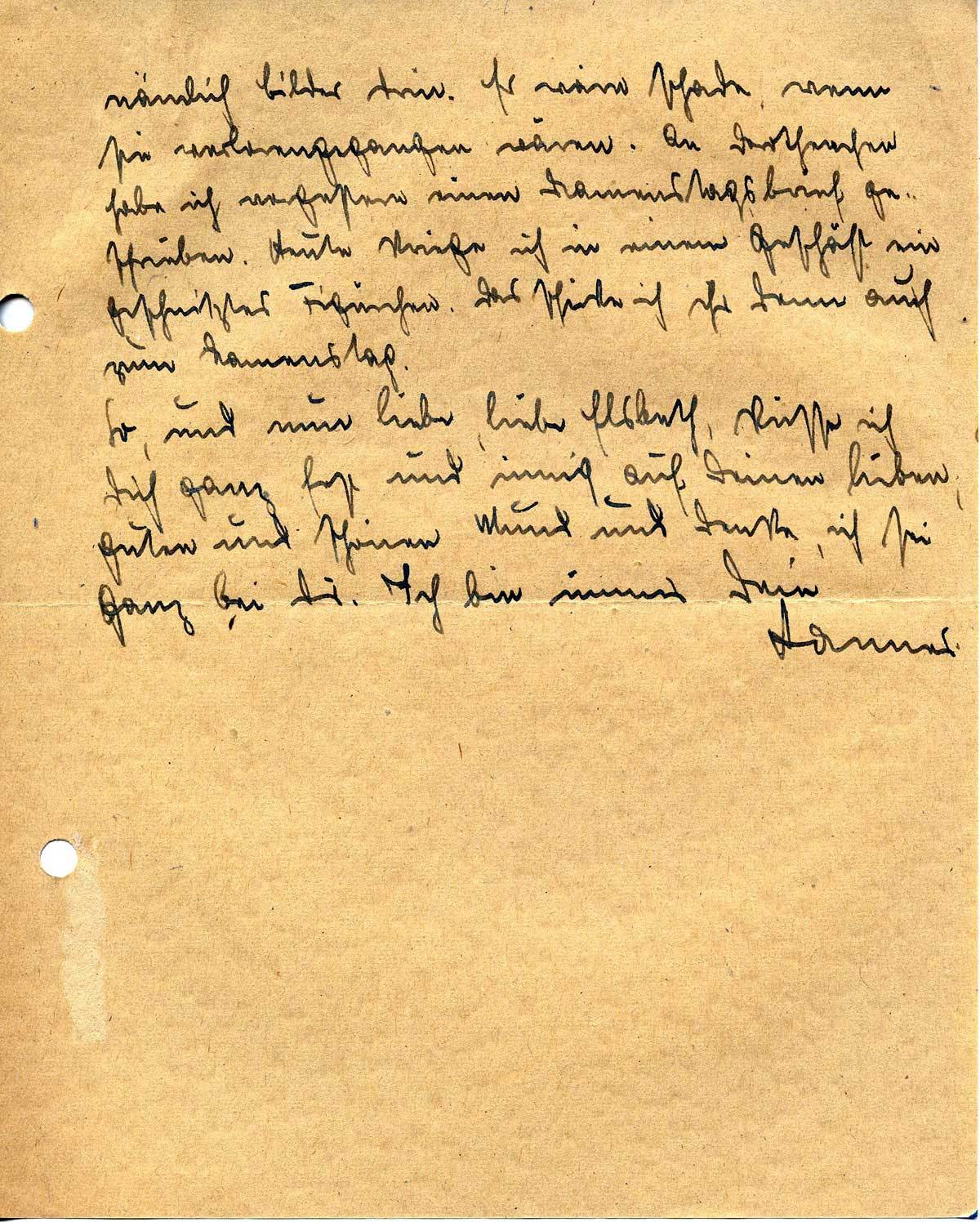 So, und nun liebe, liebe Elsbeth, küsse ich Dich ganz fest und innig auf Deinen lieben, guten und schönen Mund und denke, ich sei ganz bei Dir. Ich bin immer