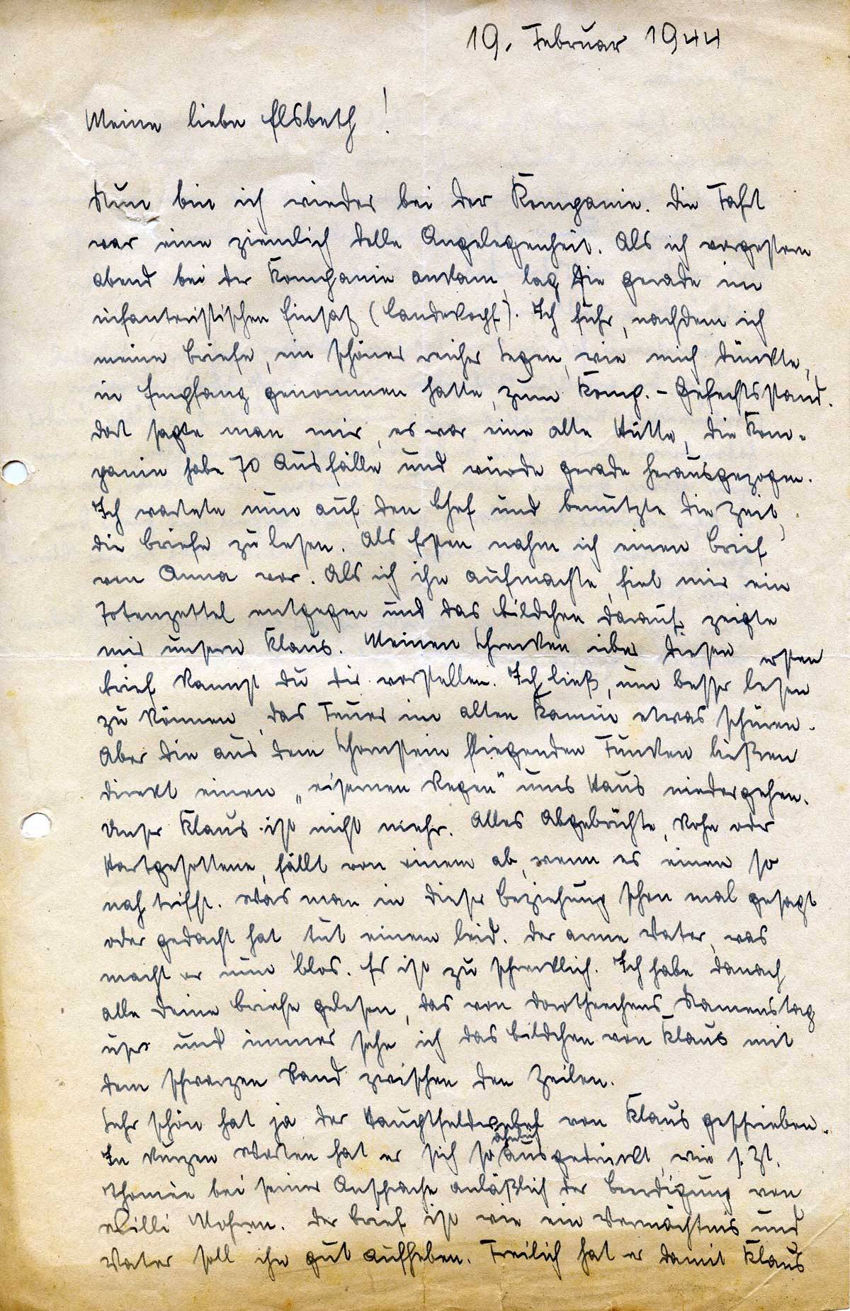 Hannes Ließem an seine Frau Elsbeth, 19. Februar 1944