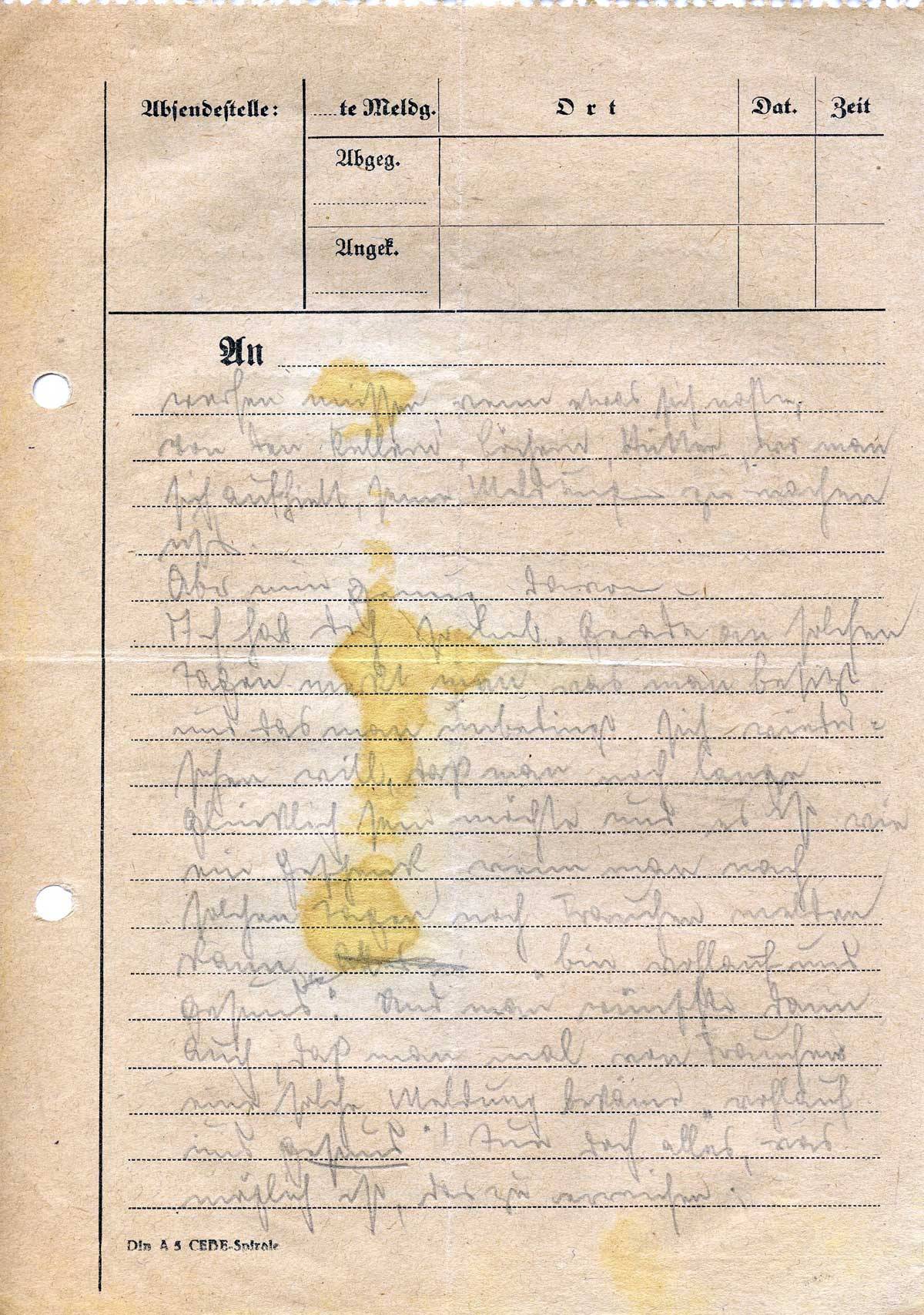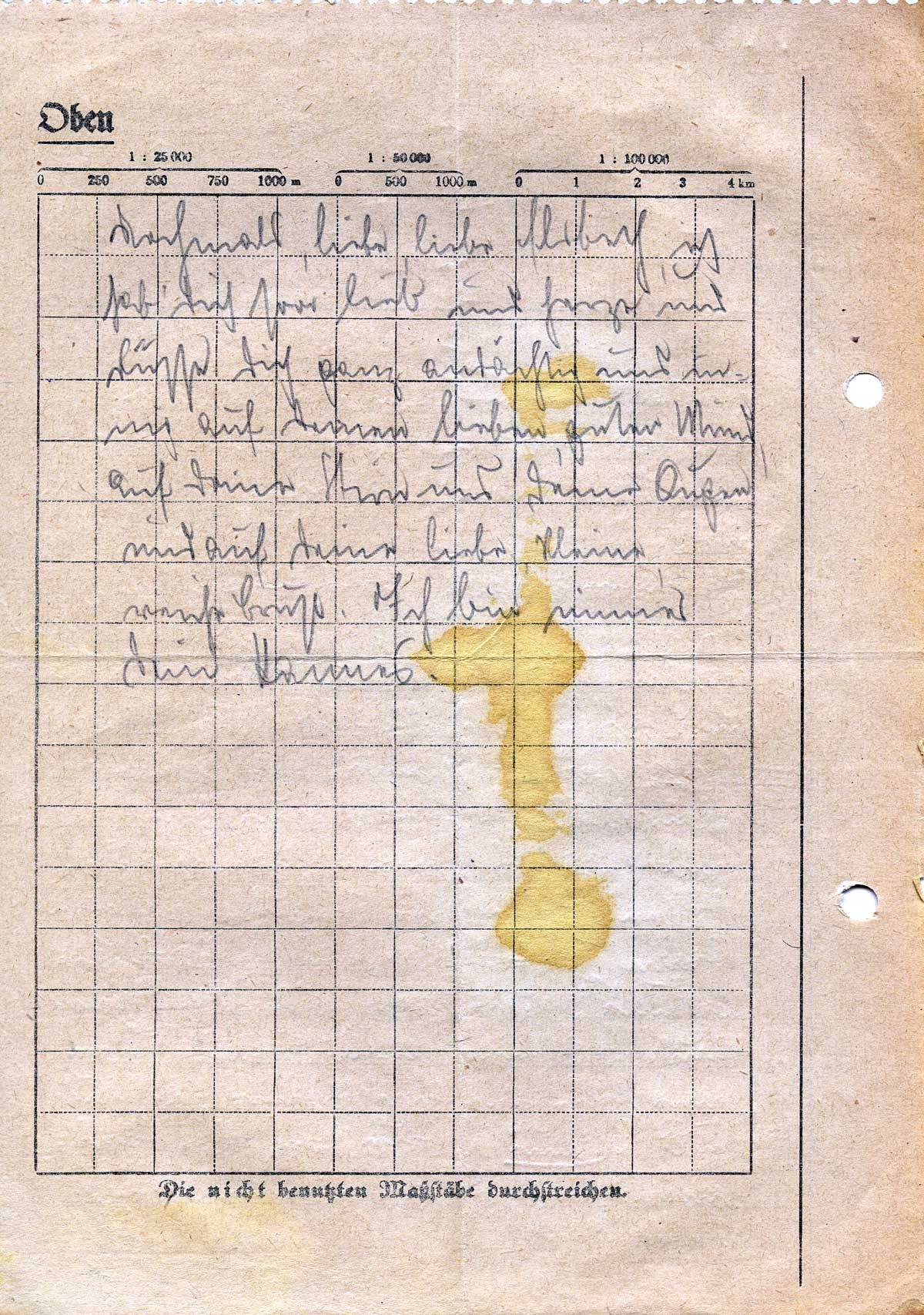 Keller mit meinem Komp.-Trupp, Funker, Feldfunksprecher usw. Gleich fahre ich mit dem Chef zum Regiment und dann. Ach, das schreibe ich Dir später. Für Dich ist wichtig, daß Du Dir keine Sorge zu machen brauchst. Ich glaube, trotzdem ich nicht der Beste bin, habe ich einen guten Schutzengel. Nun sind die großen Kampftage vorbei. Aussehen tue ich wie ein Schwein. Schon seit dem 29. 2. habe ich keine trockenen Füße, dreckig von oben bis unten, Läuse, der Anzug stinkt von den Gräben und Löchern, wo man sich oft hat hinein-