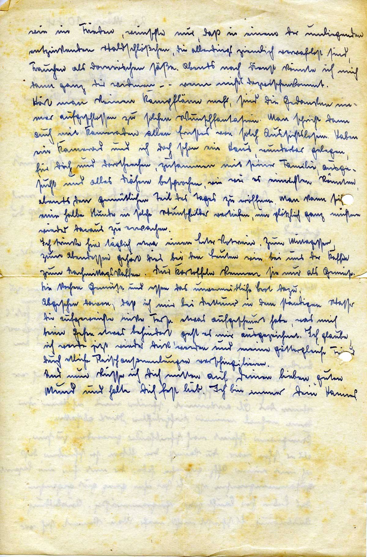 Kampmann scheint noch schreibfauler geworden zu sein, als er schon war. Du kannst den Eltern ja schreiben, daß ich mit einem Offz. gesprochen habe, der mit ihm im Lazarett zusammengewesen ist. Es sei ihm ganz gut gegangen.
