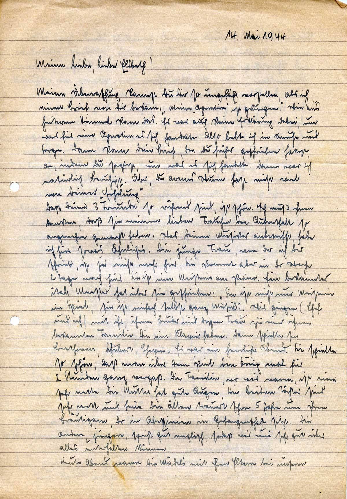 Hannes Ließem an seine Frau Elsbeth, 14. Mai 1944