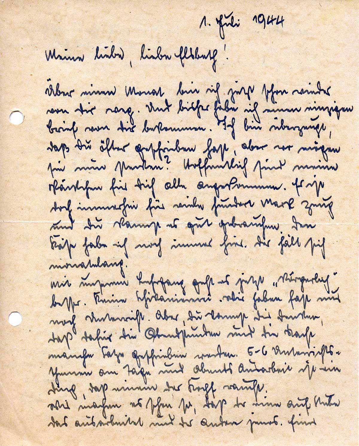 Hannes Ließem an seine Frau Elsbeth, 1. Juli 1944