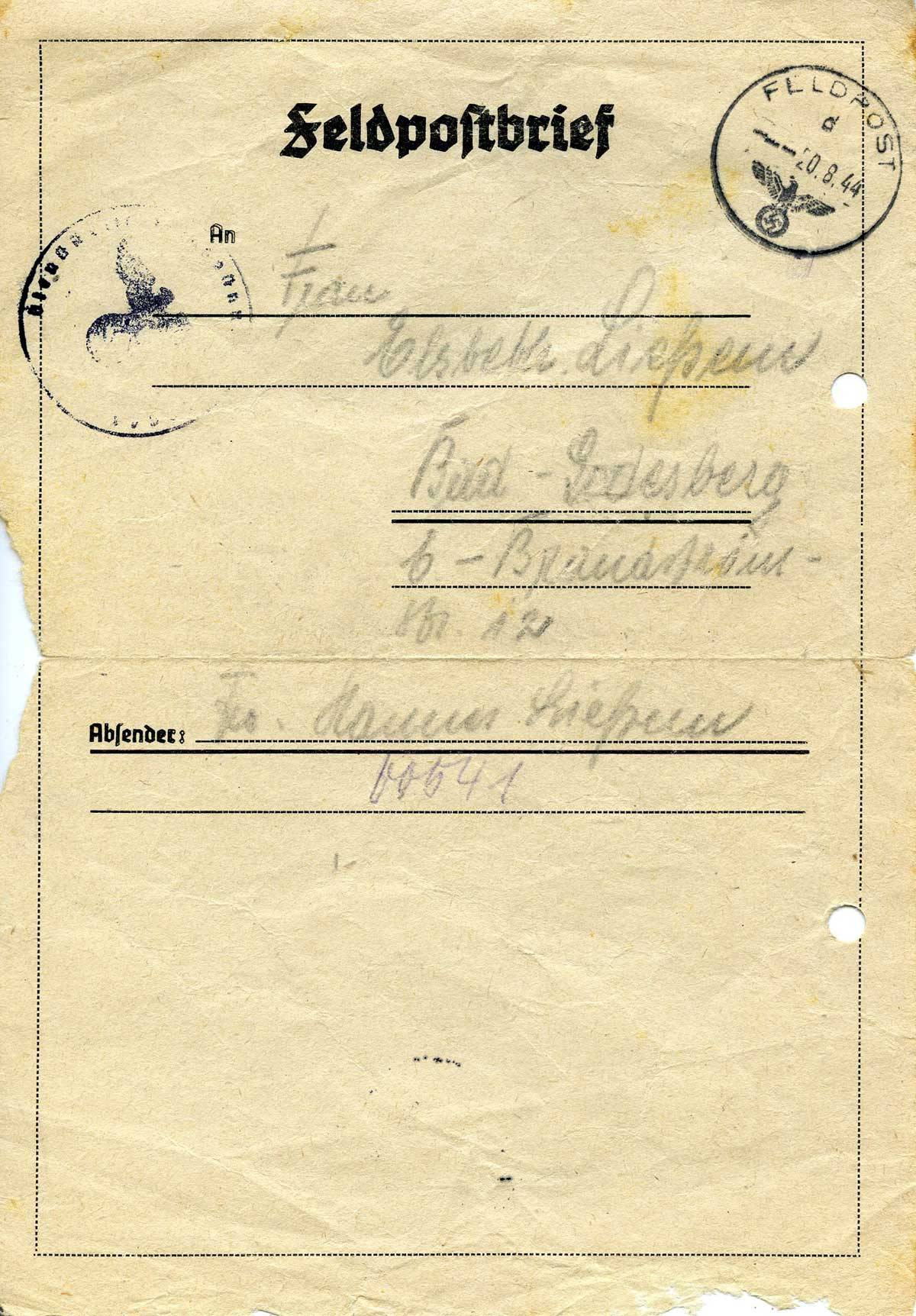 Hannes Ließem an seine Frau Elsbeth, 19. August 1944