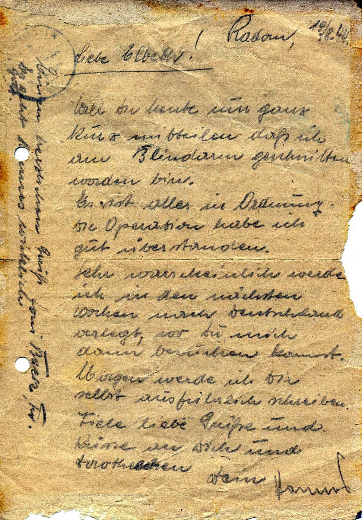Der Brief wurde von Hannes’ Kamerad Toni Back geschrieben.