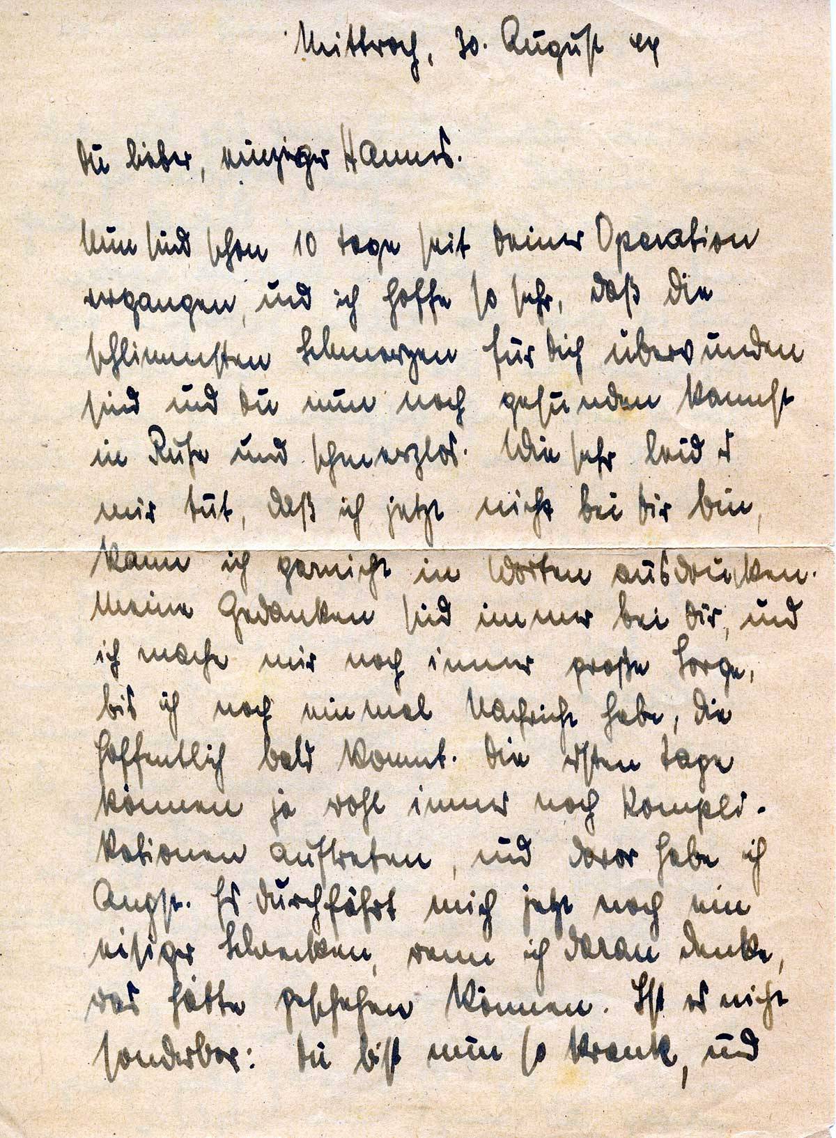 Elsbeth Ließem an ihren Mann Hannes, 30. August 1944