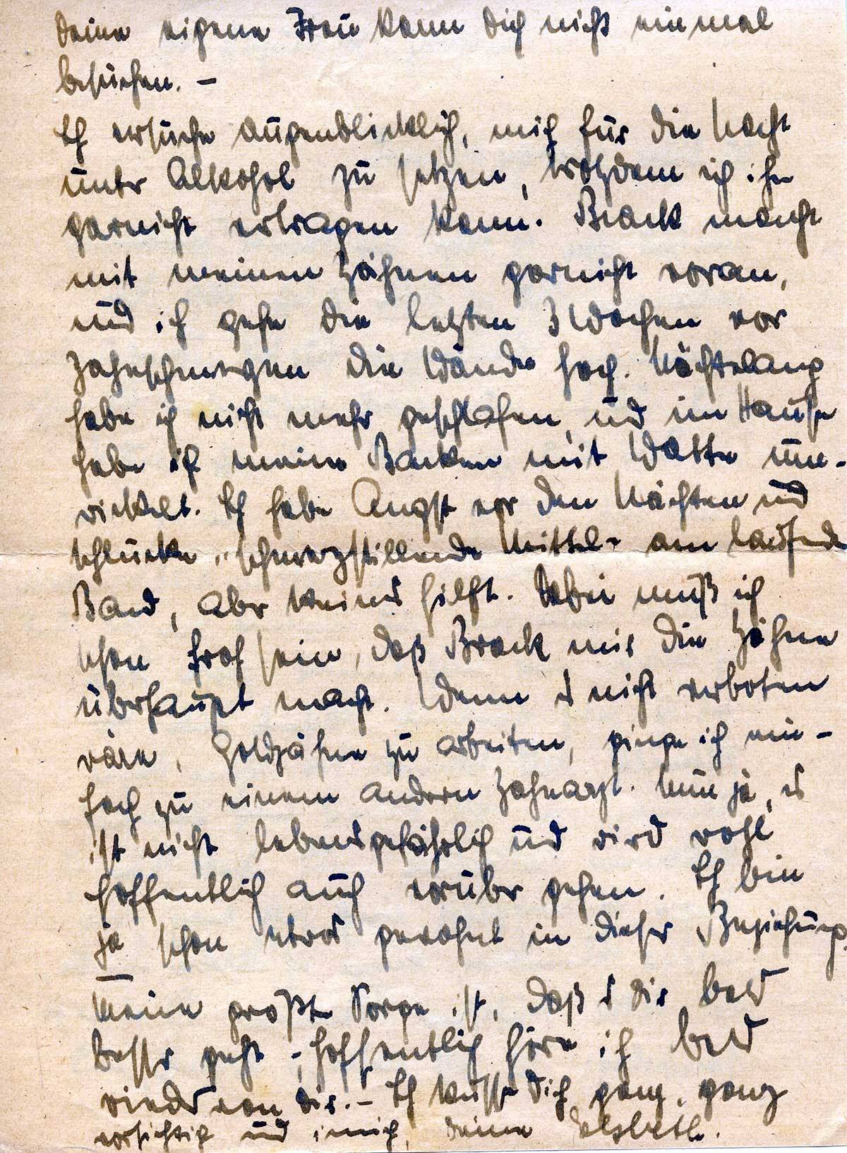 Meine größte Sorge ist, daß es Dir bald besser geht; hoffentlich höre ich bald wieder von Dir. – Ich küsse Dich ganz, ganz vorsichtig und innig, Deine Elsbeth