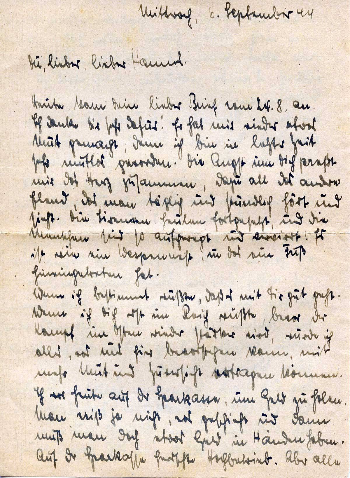 Elsbeth Ließem an ihren Mann Hannes , 6. September 1944