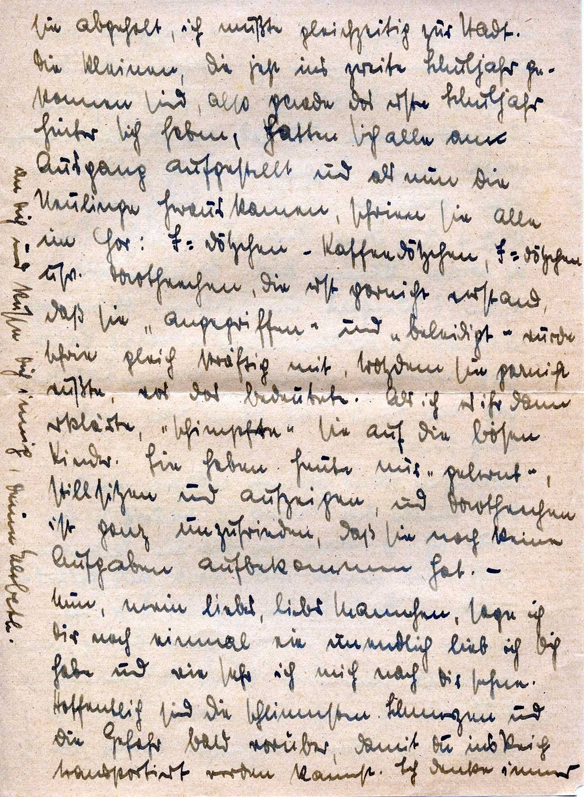 Hoffentlich sind die schlimmsten Schmerzen und die Gefahr bald vorüber, damit Du ins Reich transportiert werden kannst. Ich denke immer an Dich und küsse Dich innig,