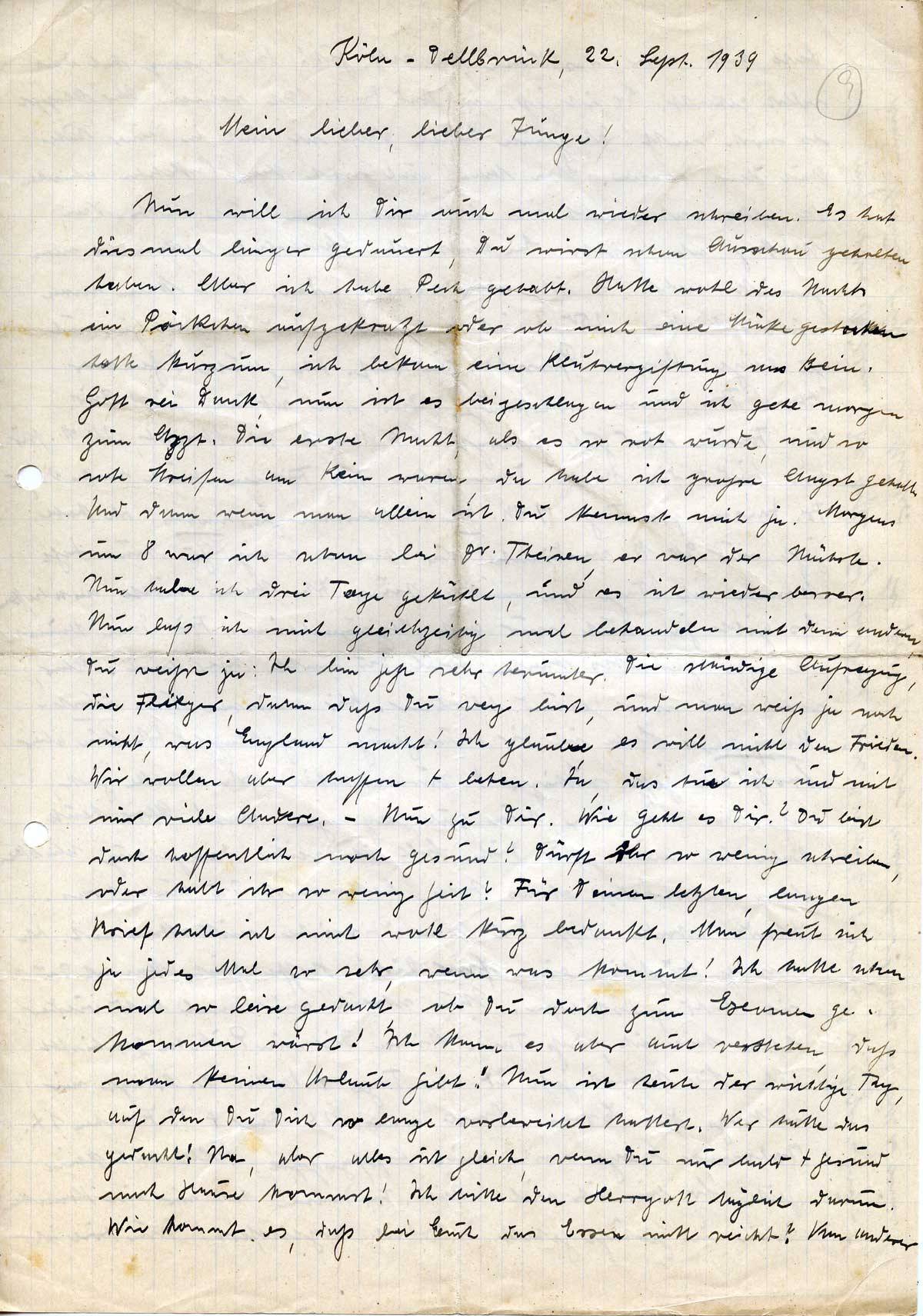 Anna Schmitz an ihren Sohn Rudolf, 22. September 1939