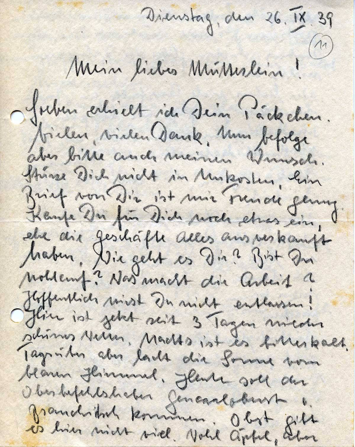 Rudolf Schmitz an Mutter Anna, 26. September 1939
