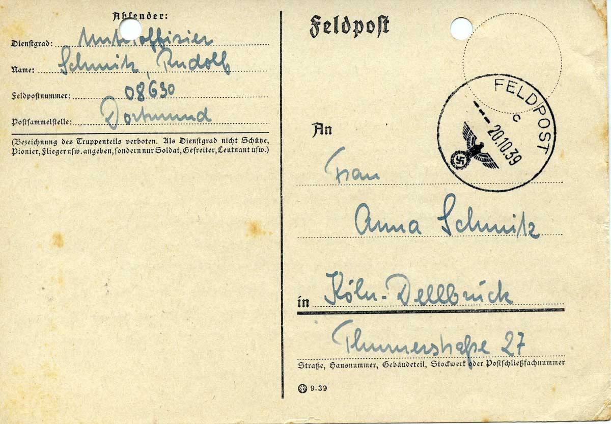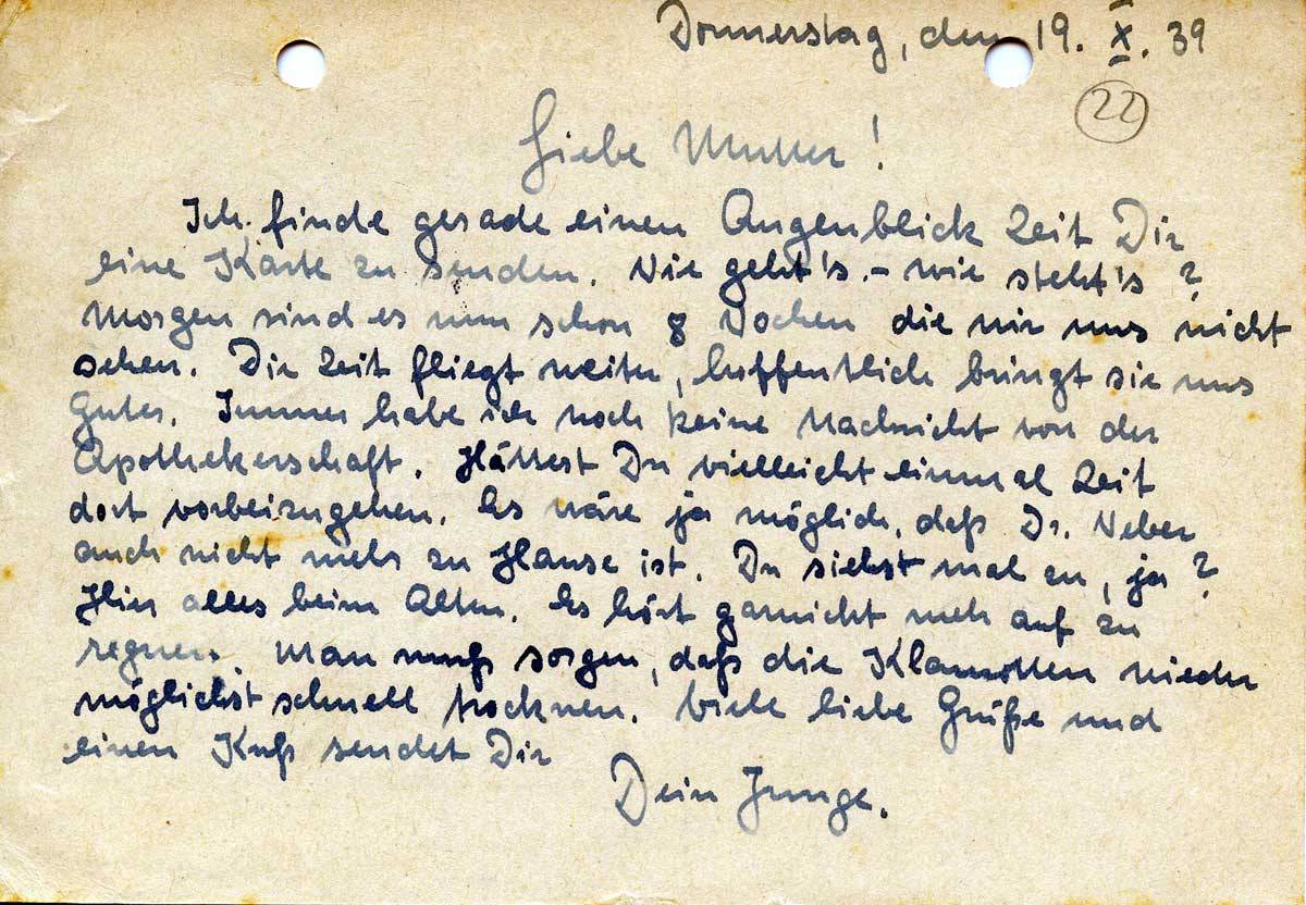 Rudolf Schmitz an Mutter Anna, 19. Oktober 1939