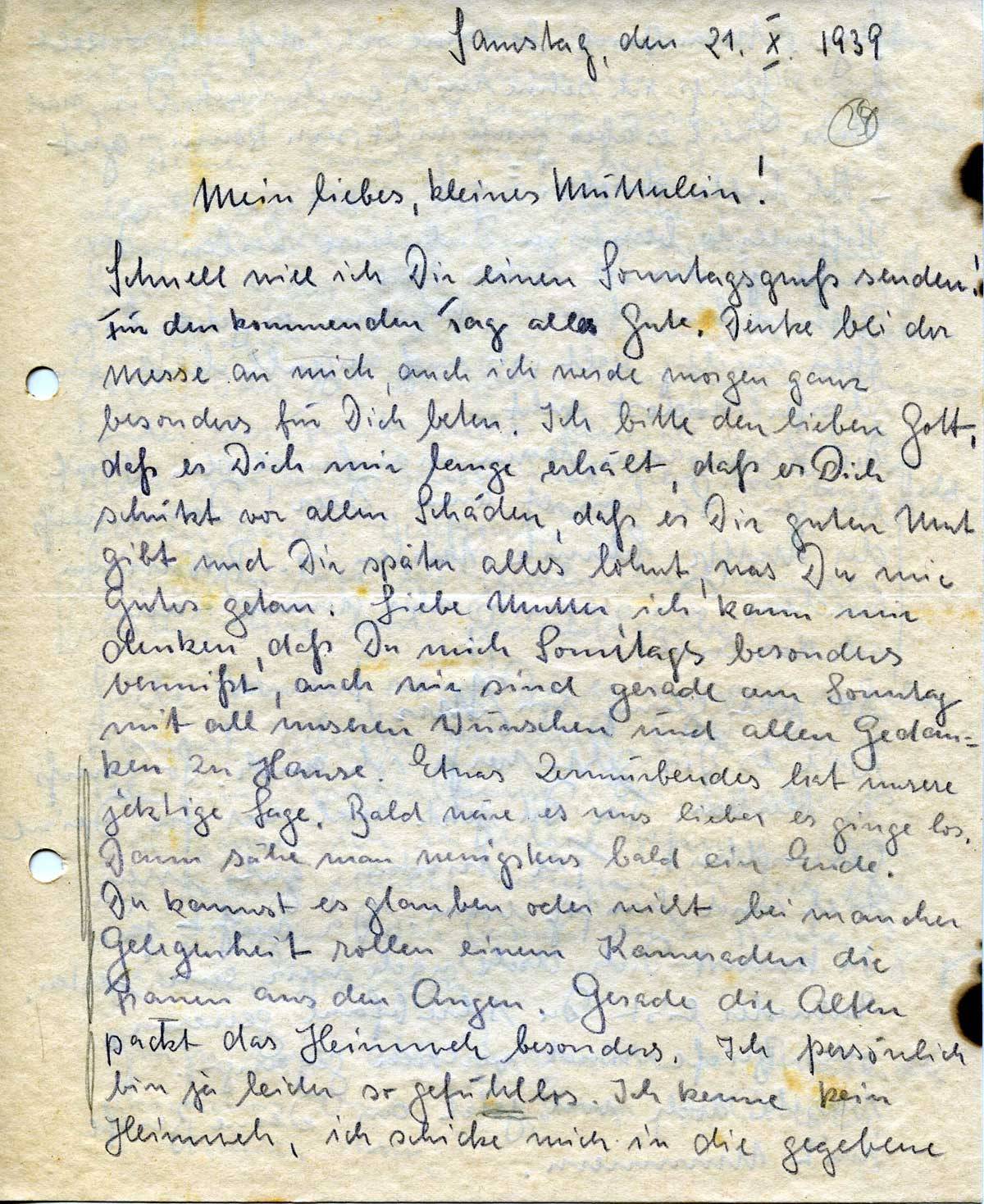 Rudolf Schmitz an Mutter Anna, 21. Oktober 1939