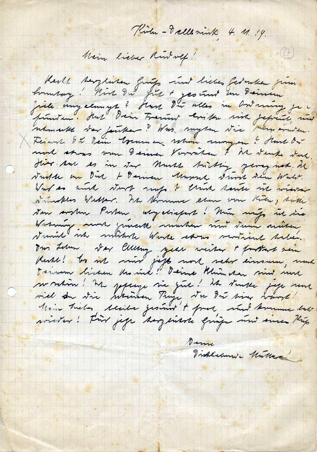 Anna Schmitz an ihren Sohn Rudolf, 4. November 1939