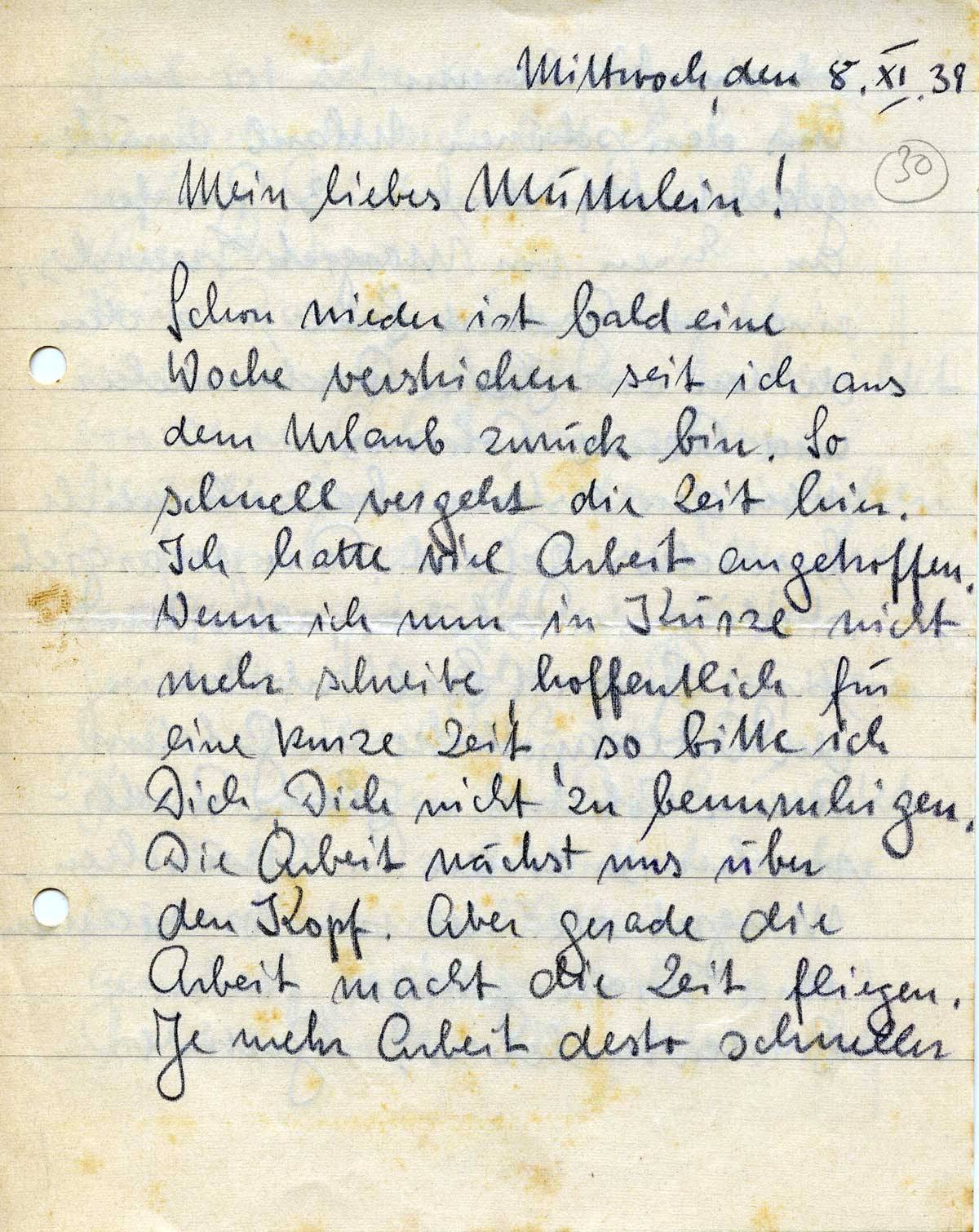 Rudolf Schmitz an Mutter Anna, 8. November 1939