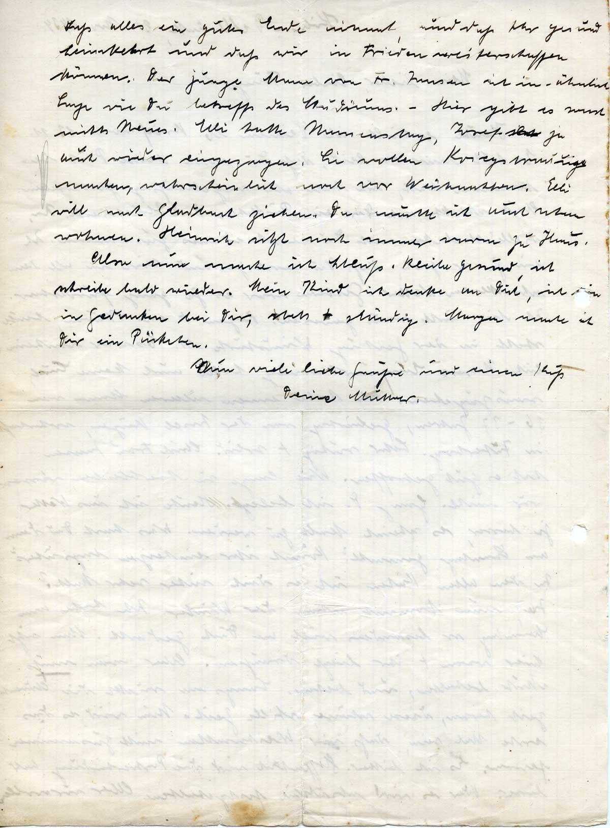 Also nun mache ich Schluß. Bleibe gesund, ich schreibe bald wieder. Mein Kind ich denke an Dich, ich bin in Gedanken bei Dir, stets + ständig. Morgen sende ich Dir ein Päckchen.