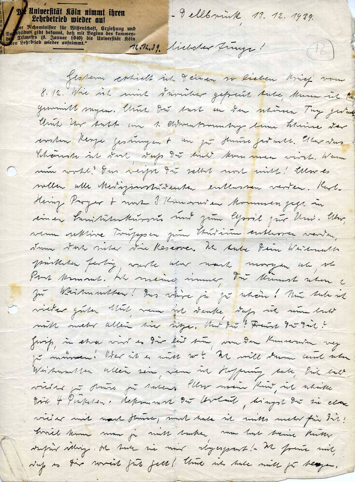 Anna Schmitz an ihren Sohn Rudolf, 13. Dezember 1939