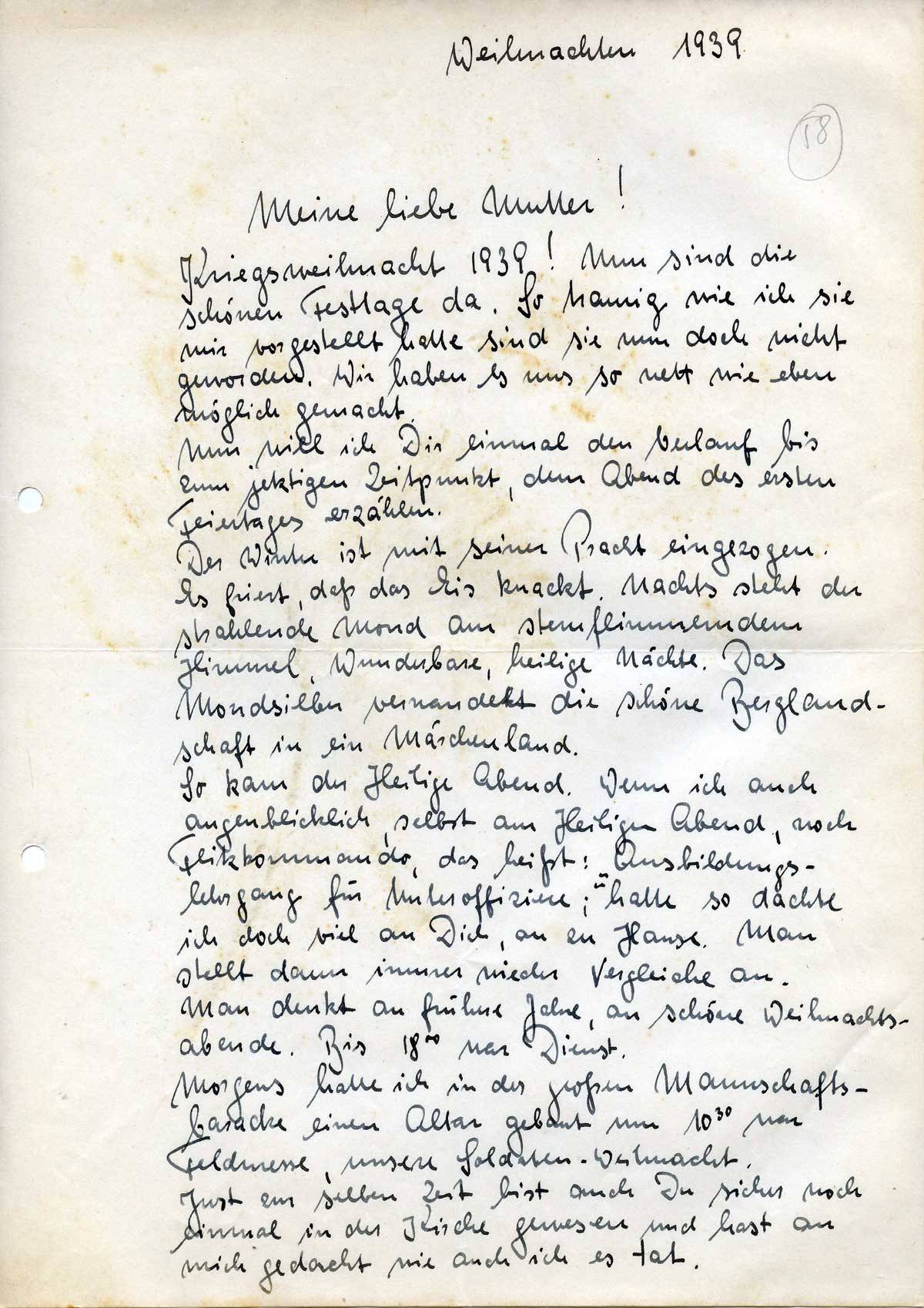 Kriegsweihnacht 1939! Nun sind die schönen Festtage da. So traurig wie ich sie mir vorgestellt hatte sind sie nun doch nicht geworden. Wir haben es uns so nett wie eben möglich gemacht.