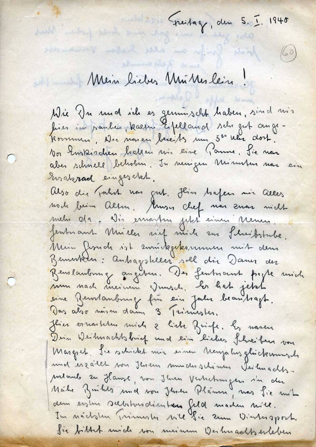 Rudolf Schmitz an Mutter Anna, 5. Januar 1940