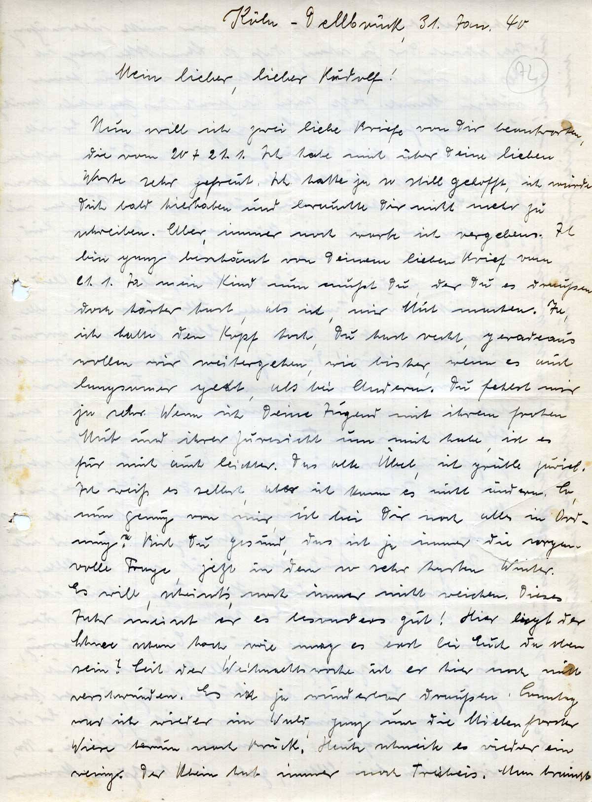 Anna Schmitz an ihren Sohn Rudolf, 31. Januar 1940
