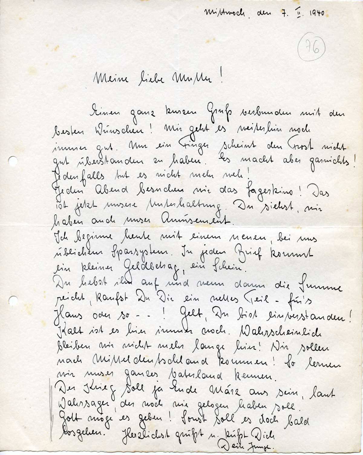 Rudolf Schmitz an Mutter Anna, 7. Februar 1940