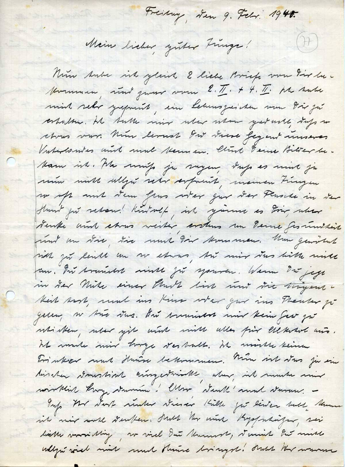 Anna Schmitz an ihren Sohn Rudolf, 9. Februar 1940