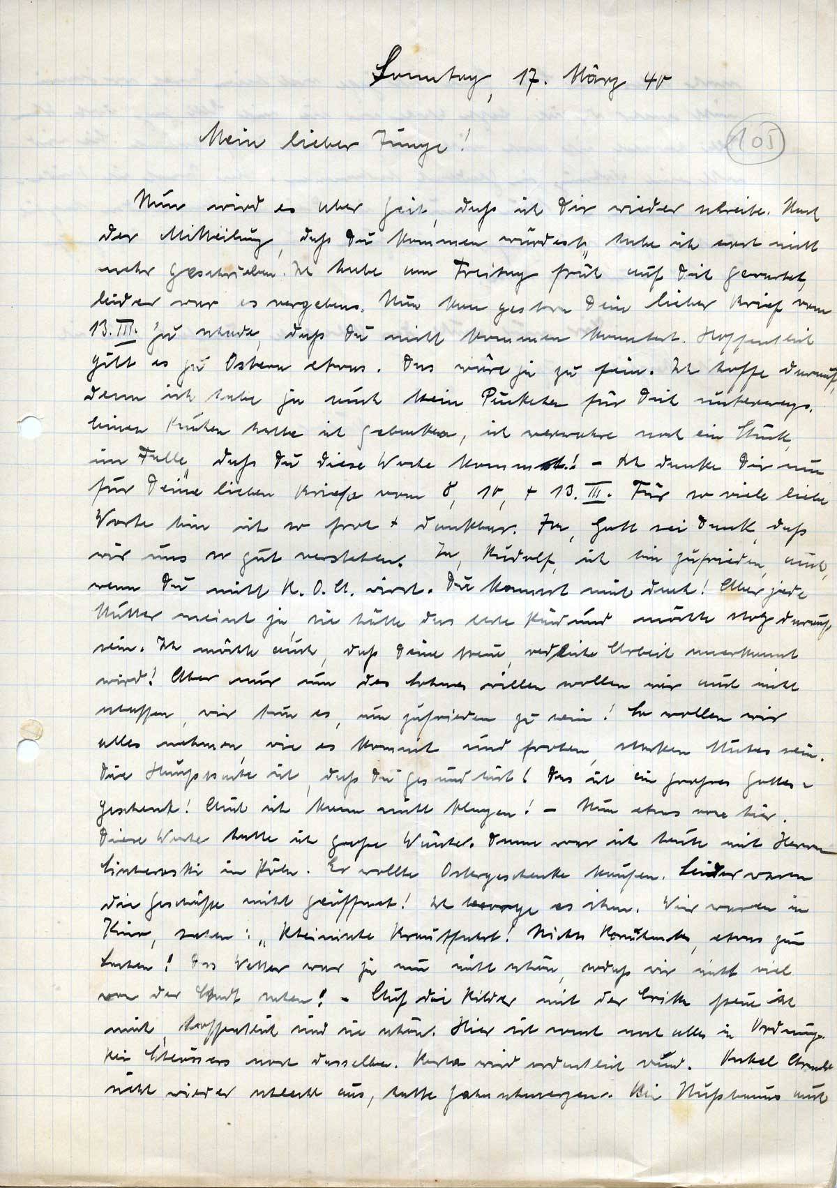 Anna Schmitz an ihren Sohn Rudolf, 17. März 1940
