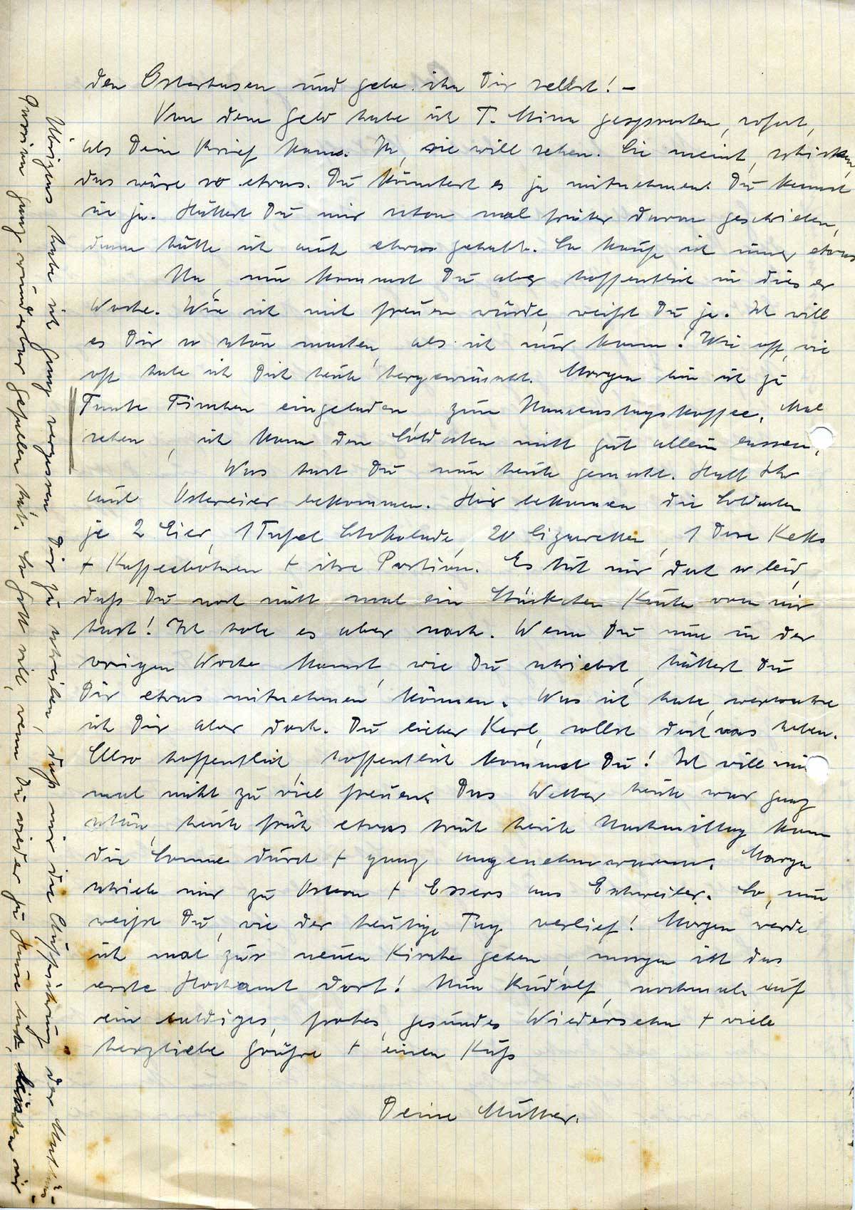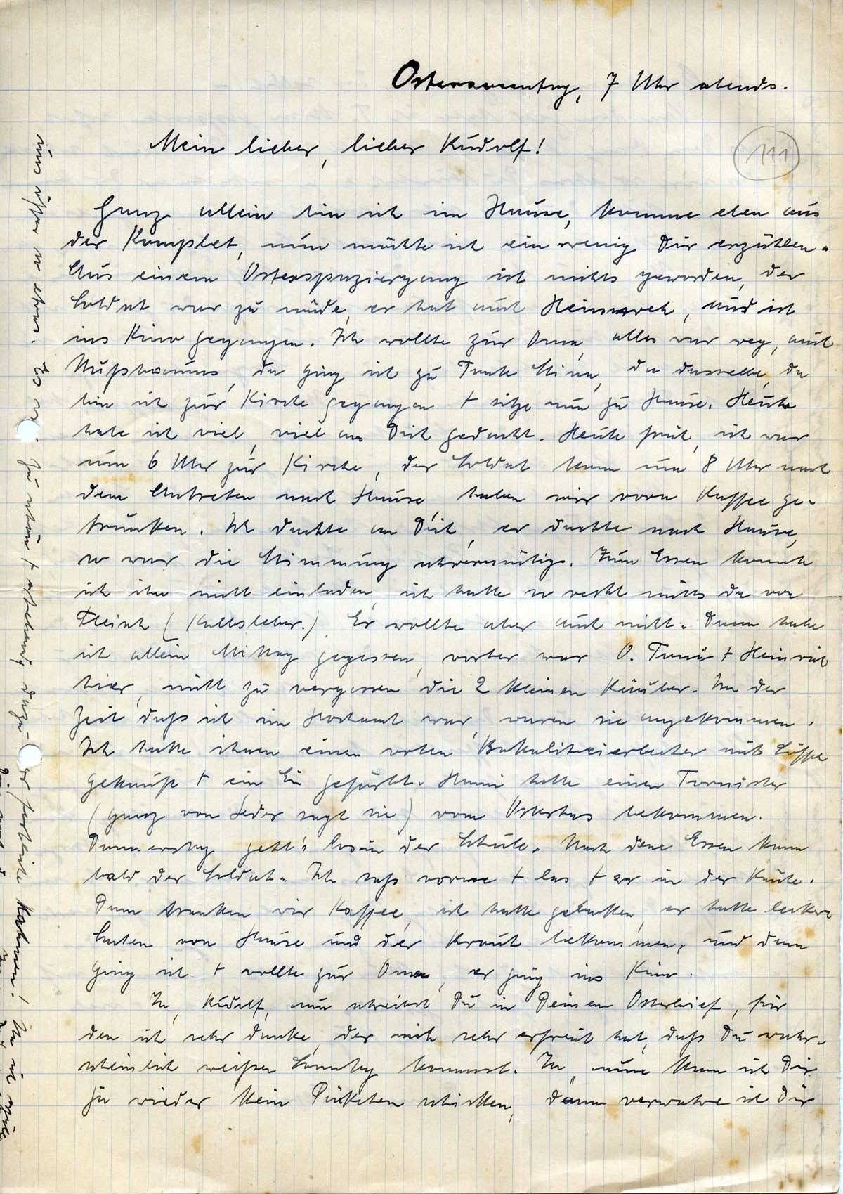 Ja, Rudolf, nun schreibst Du in Deinem Osterbrief, für den ich sehr danke, der mich sehr erfreut hat, daß Du wahrscheinlich weißen Sonntag kommst. Ja, nun kann ich Dir ja wieder kein Päckchen schicken, dann verwahre ich Dir