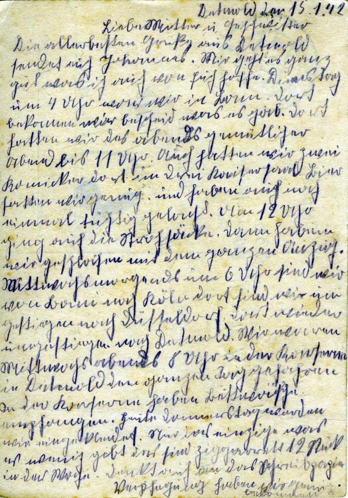 Johannes Flohr an Mutter und Geschwister, 15. Januar 1942