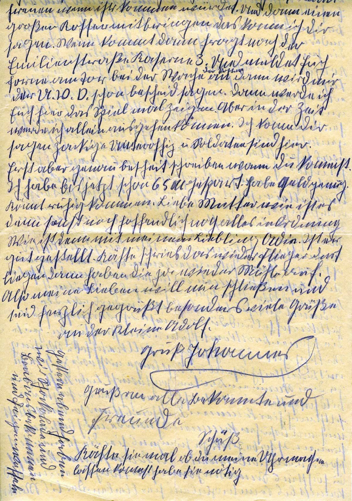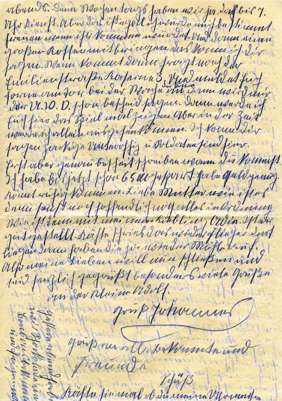 Also, meine Lieben, will nun schließen, seid herzlich gegrüßt, besonders viele Grüße an den kleinen Adolf.