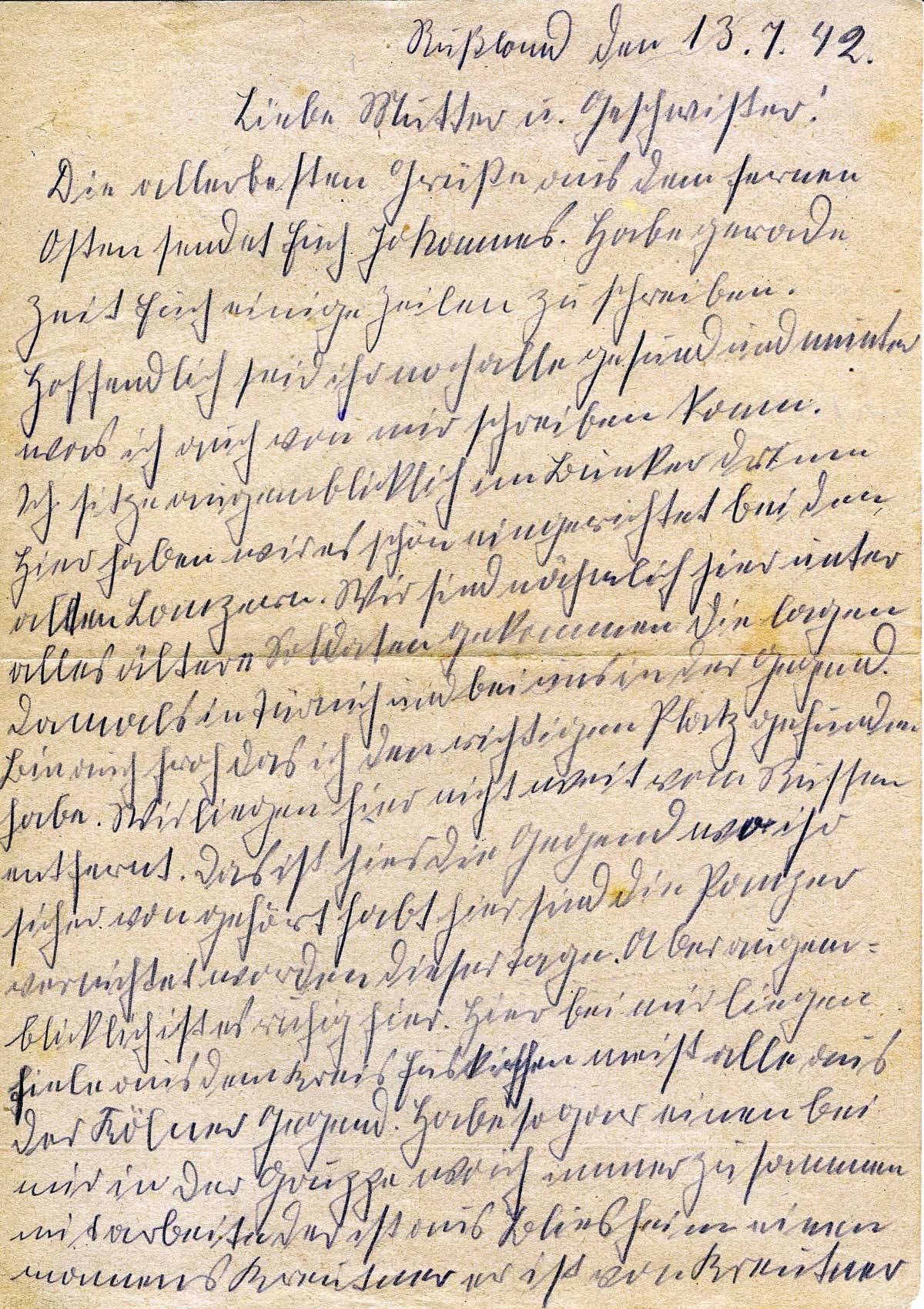 Johannes Flohr an Mutter und Geschwister, 13. Juli 1942