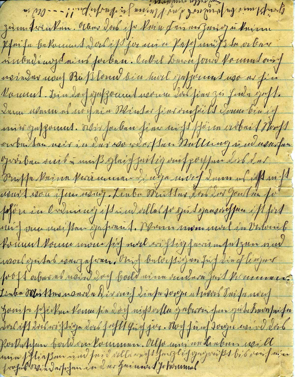 Liebe Mutter, werde dir auch dieser Tage etwas Seife nach Flause schicken, kann sie doch nicht alle gebrauchen. Gute Kernseife, das ist das Richtige, das fehlt euch ja. Noch fünf Tage, dann wird das Paketchen ankommen. Also, meine Lieben, will nun schließen und seid alle recht herzlich gegrüßt bis auf ein frohes Wiedersehen in der Heimat, Johannes.