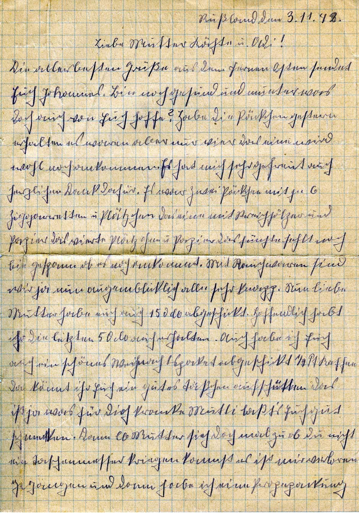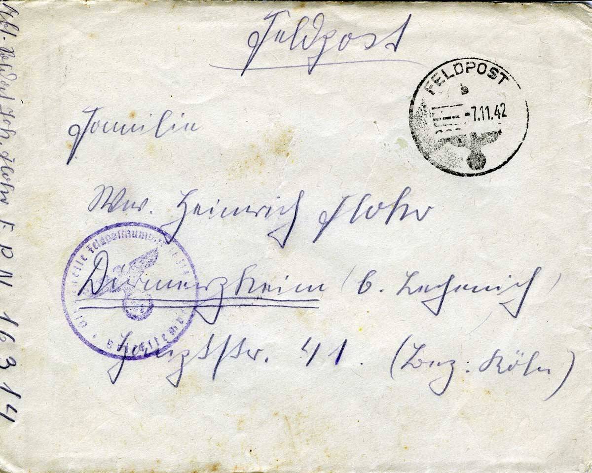 Johannes Flohr an Mutter und Geschwister, 3. November 1942
