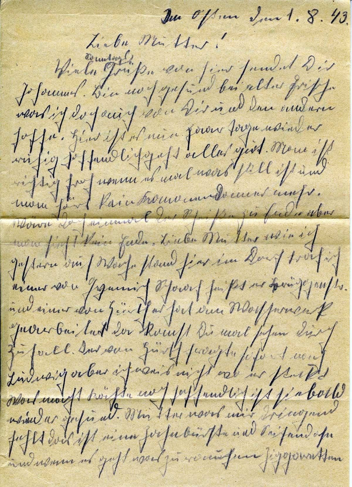 Johannes Flohr an seine Mutter, 1. August 1943