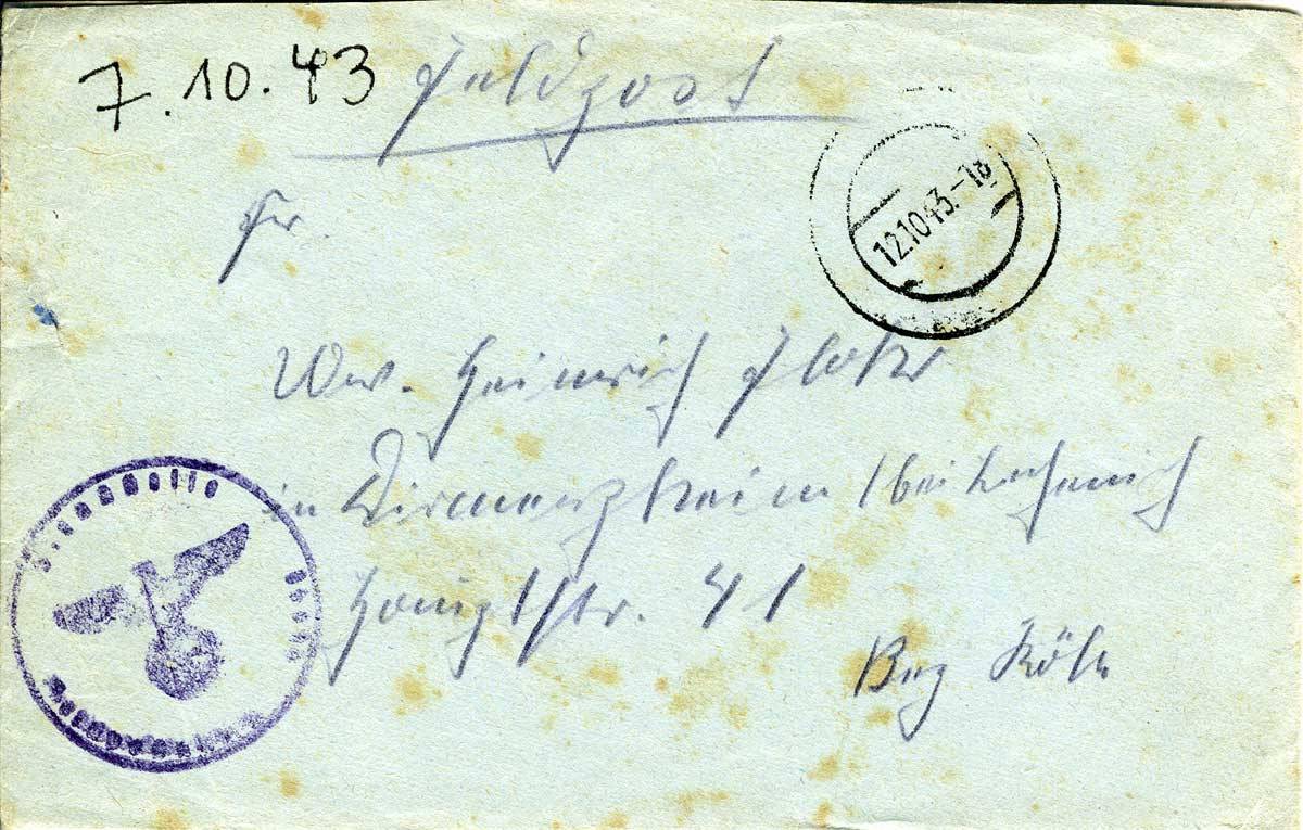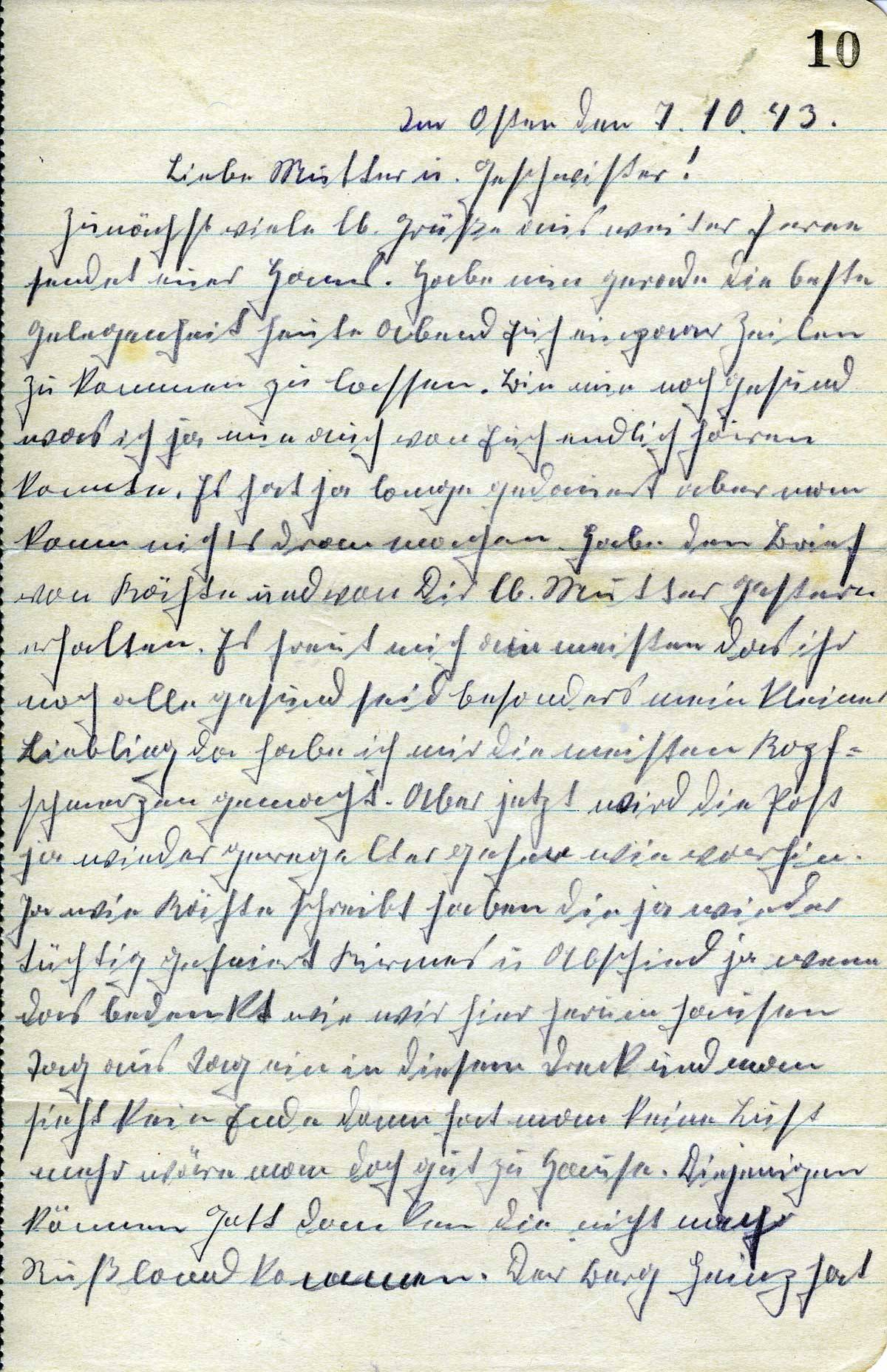 Johannes Flohr an Mutter und Geschwister, 7. Oktober 1943