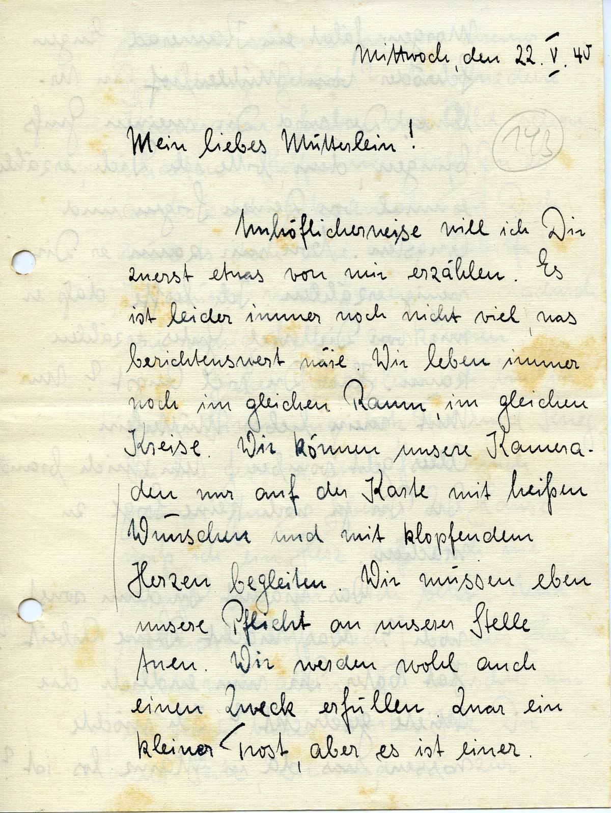 Rudolf Schmitz an Mutter Anna, 22. Mai 1940