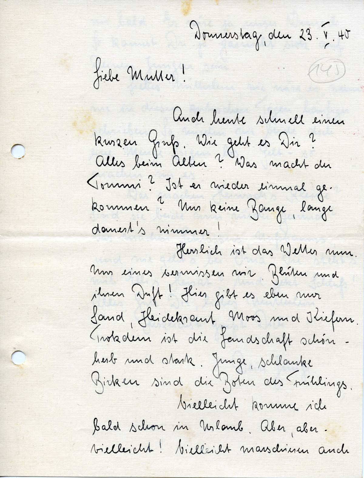 Rudolf Schmitz an Mutter Anna, 23. Mai 1940